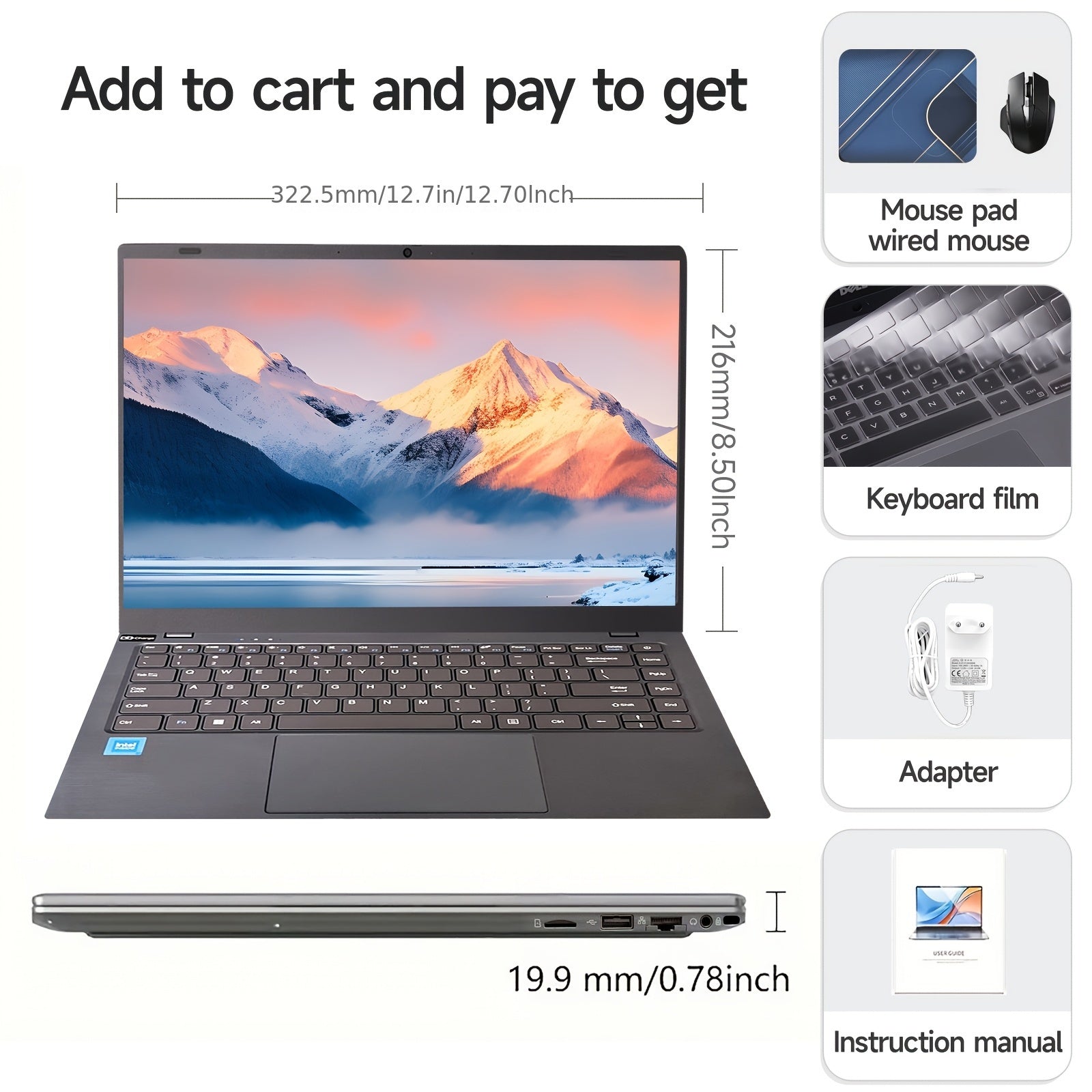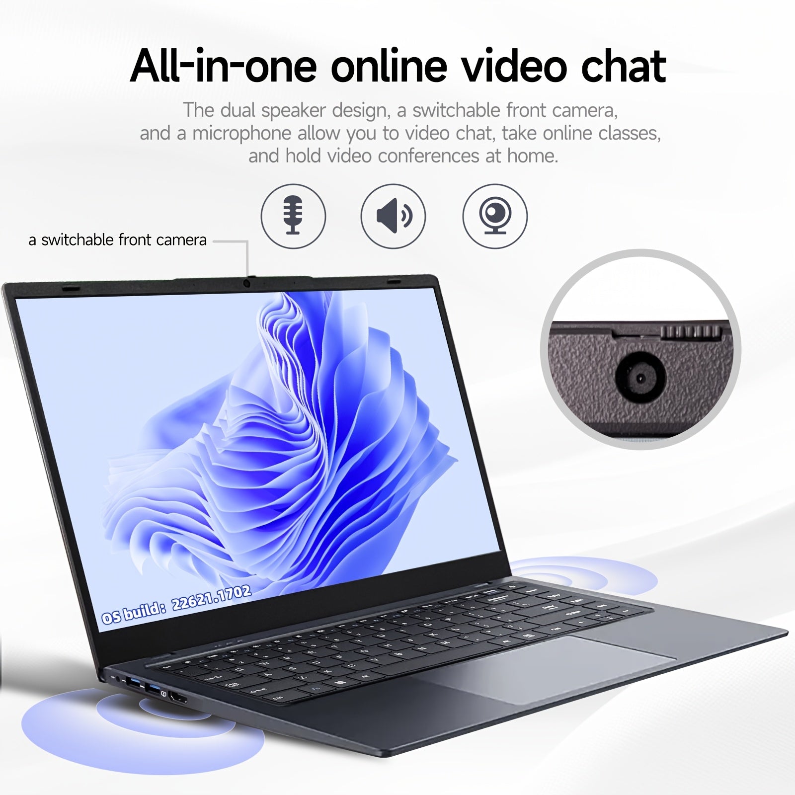 Laptop da 14" Intel Celeron con 8GB DDR4, 256GB SSD - Fotocamera frontale, Wi-Fi 2.4/5GHz, Ideale per lavoro in ufficio, lezioni online, intrattenimento e giochi - Include mouse, tappetino per mouse e copertura per tastiera, laptop per ufficio | Laptop co