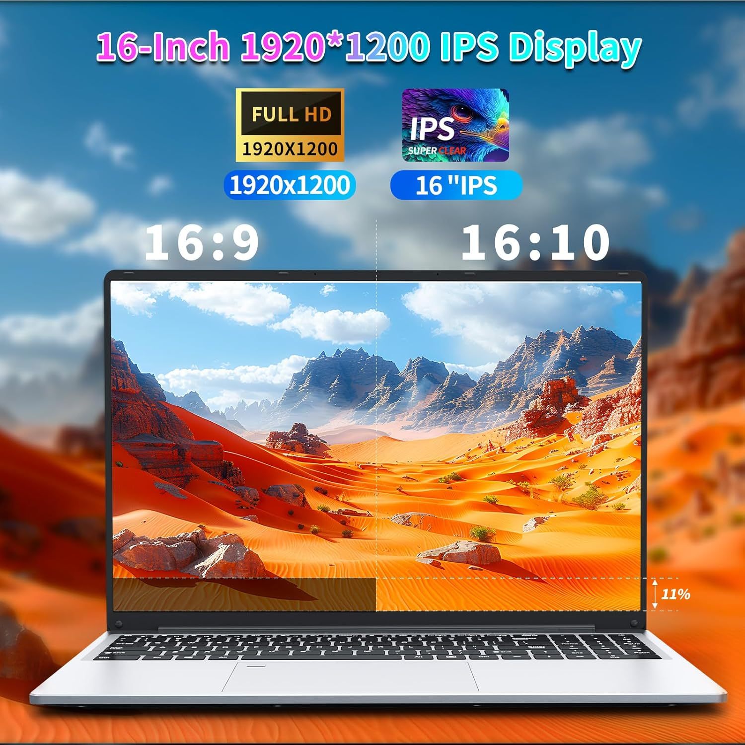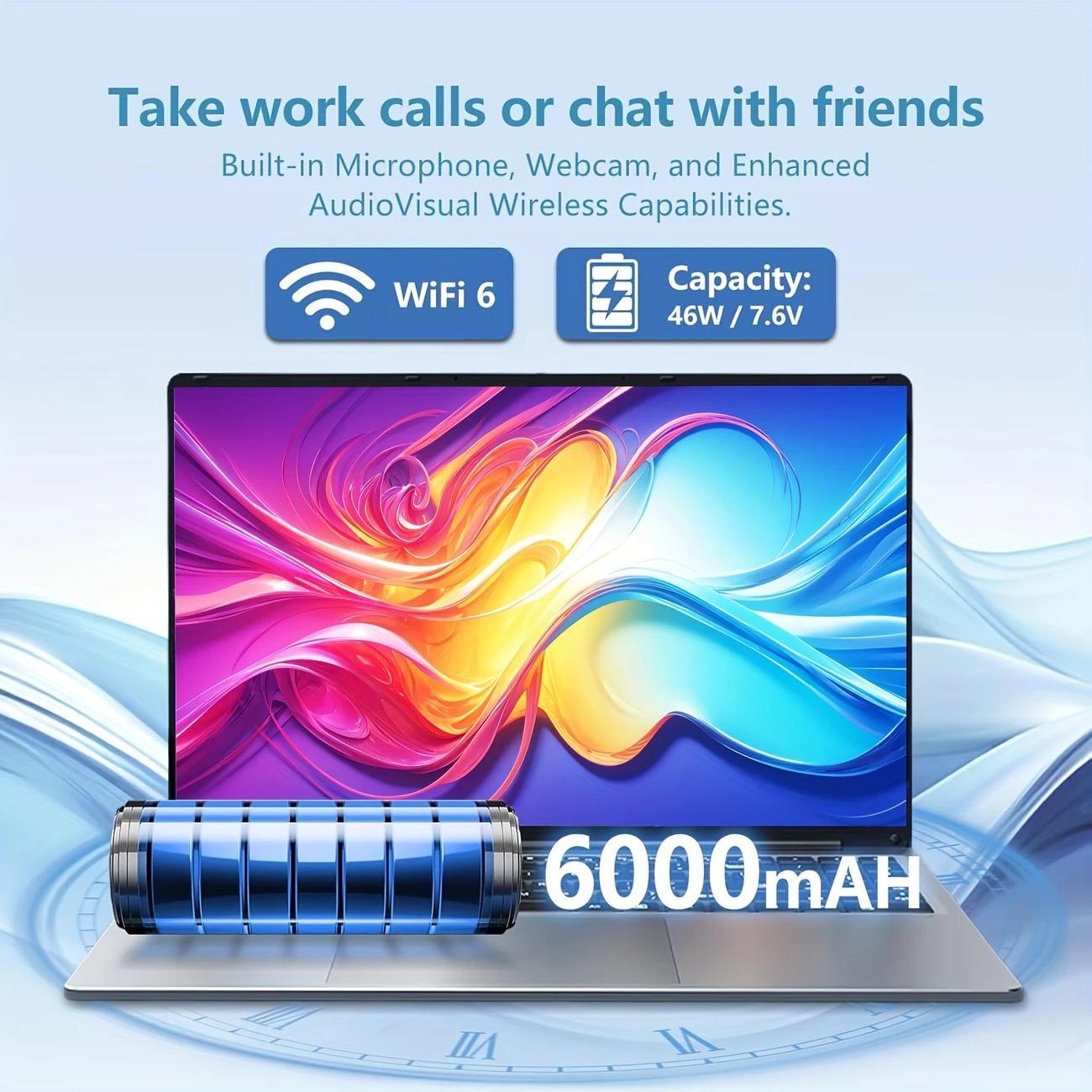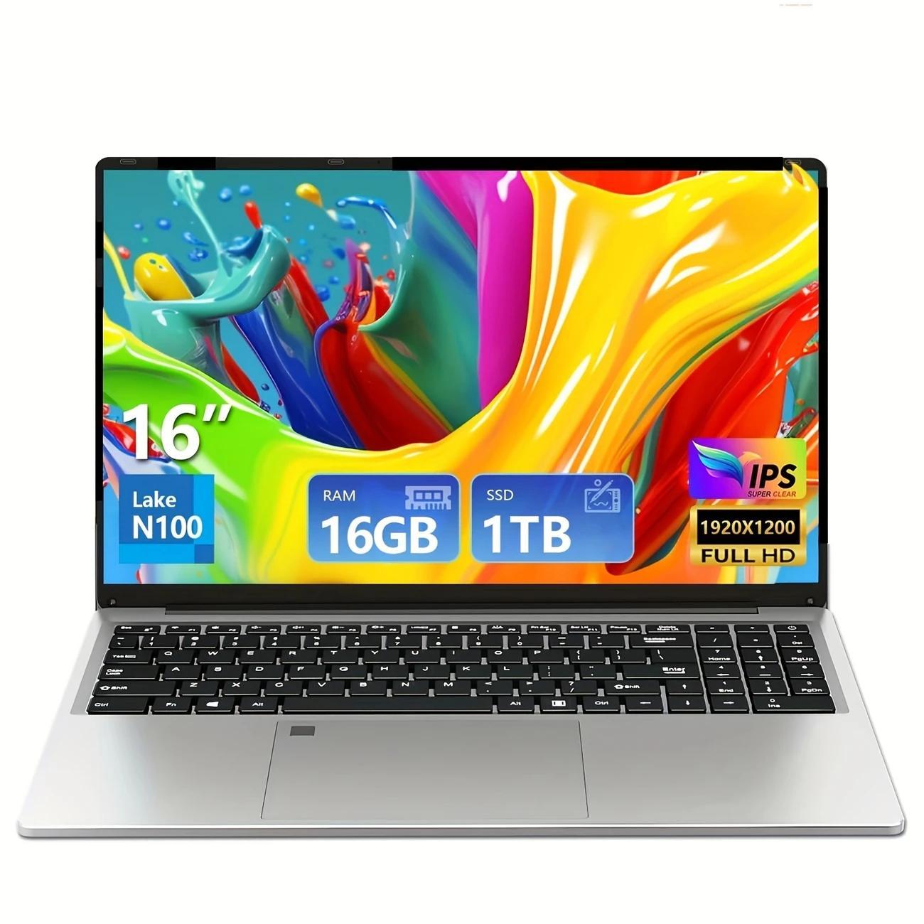 Laptop da 16 pollici, 16 GB di RAM, SSD da 512 GB, processore Celeron N100, notebook FHD 1920 x 1200 con USB 3.0, 6000 mAh, tastiera numerica illuminata