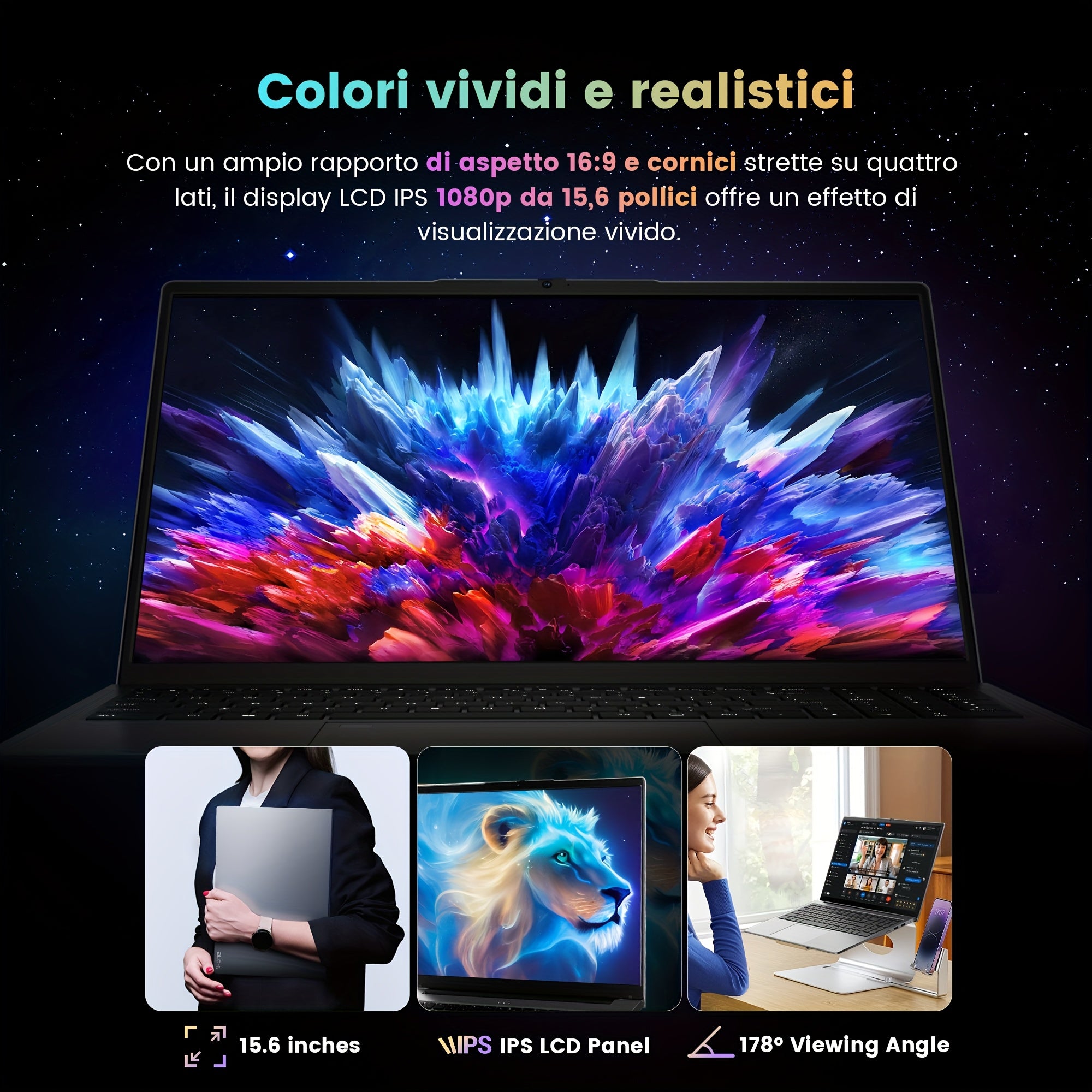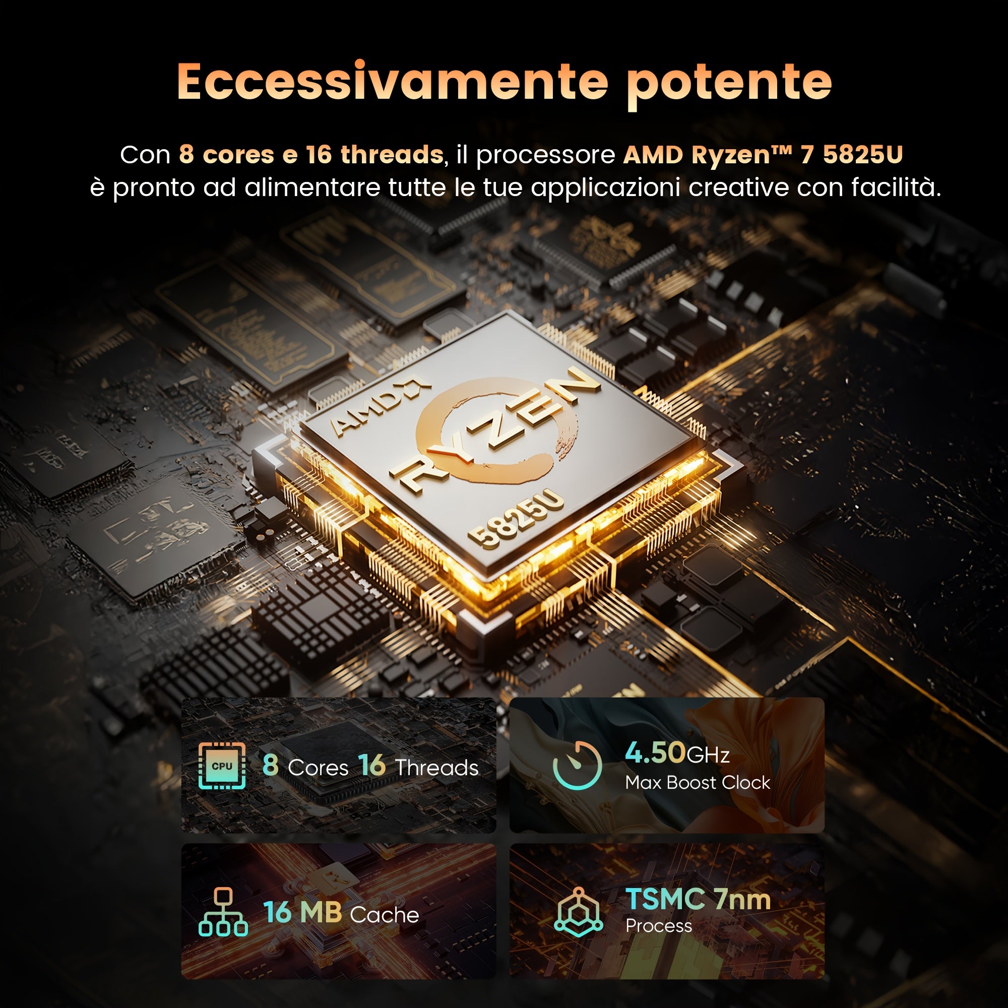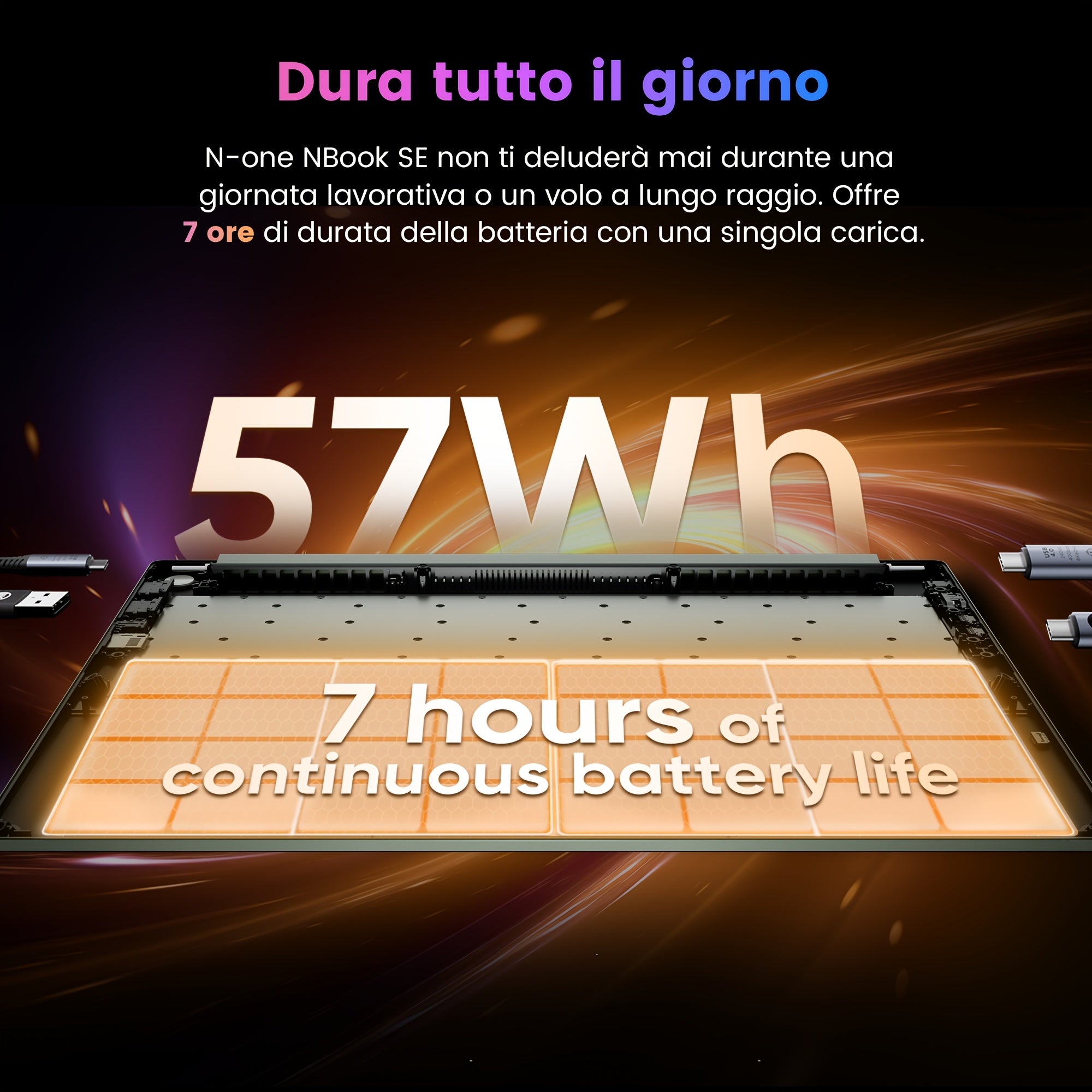 Laptop N-one Nbook SE con processore AMD Ryzen7 5825U a 8 core a 4.5Ghz, 32GB di RAM DDR4, SSD da 1TB, schermo da 15.6 pollici 1920×1080 Full HD, cornice ultra sottile, WiFi 5, batteria da 57Wh, tastiera retroilluminata a grandezza naturale, computer per