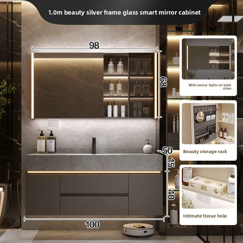 Lavabo integrato Rock Plate, lavabo da bagno, lavabo, combinazione di mobili da bagno, dimensioni multiple disponibili
