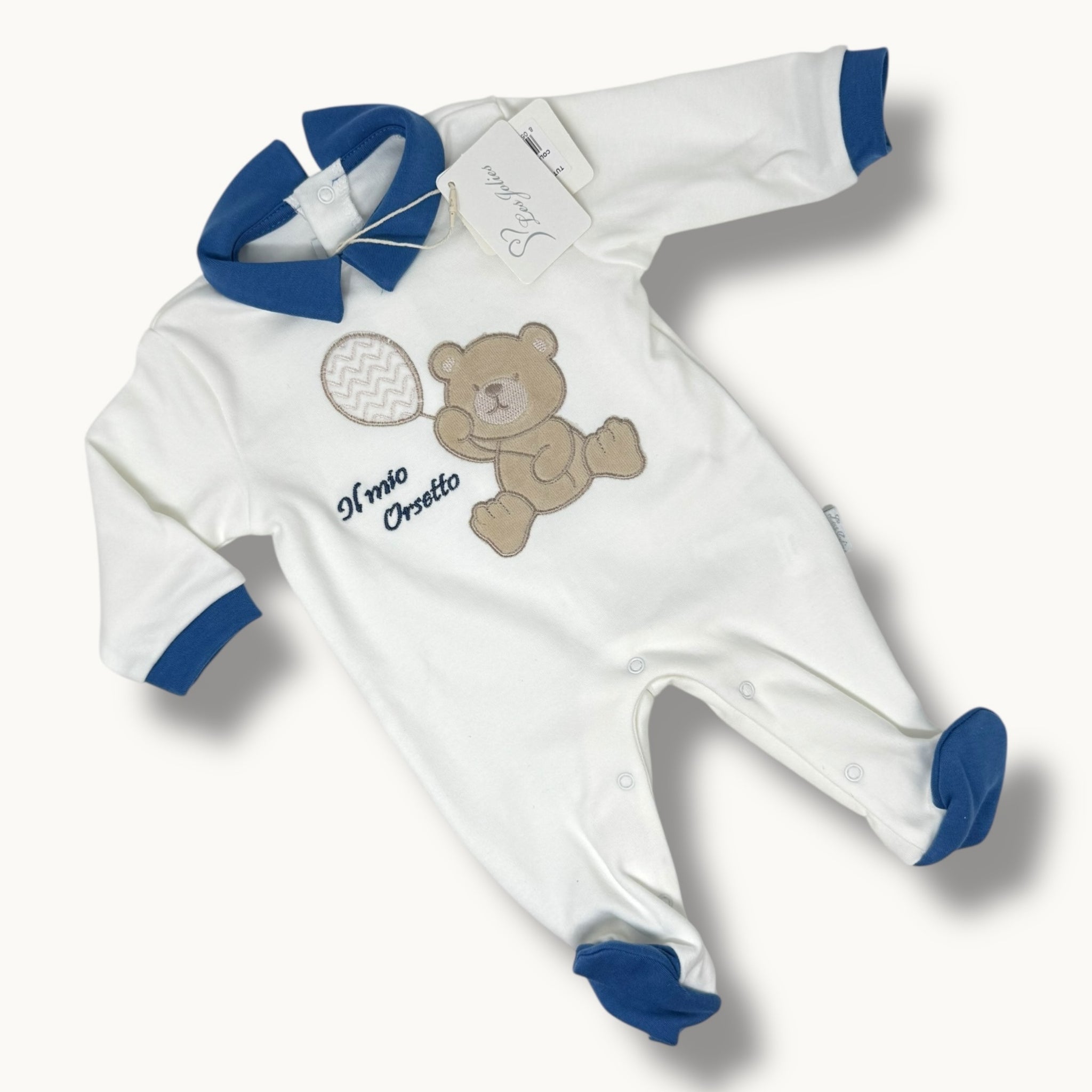 Les Jolies Tutina Maschietto Ricamata In Caldo Cotone 100% Art. Lj341-8