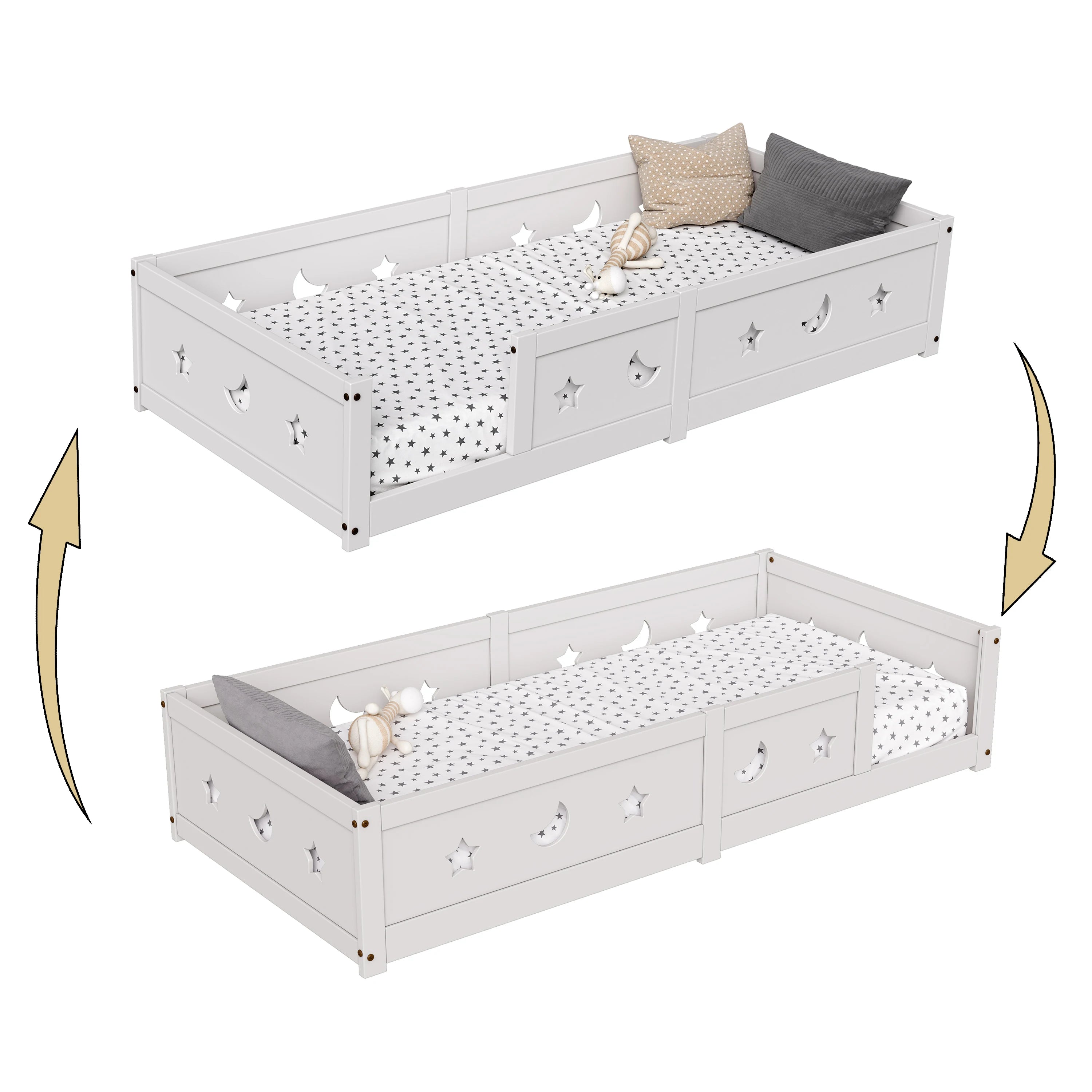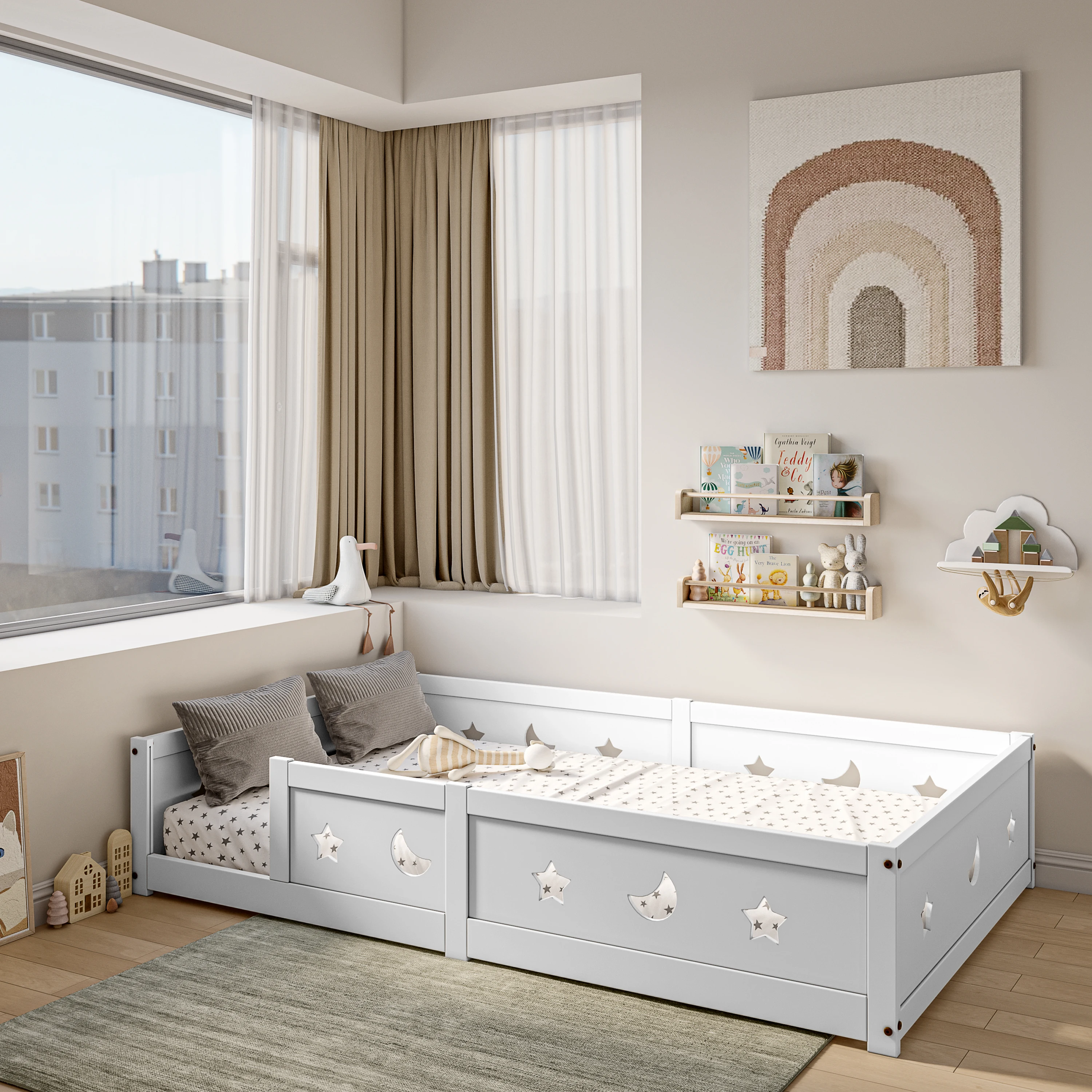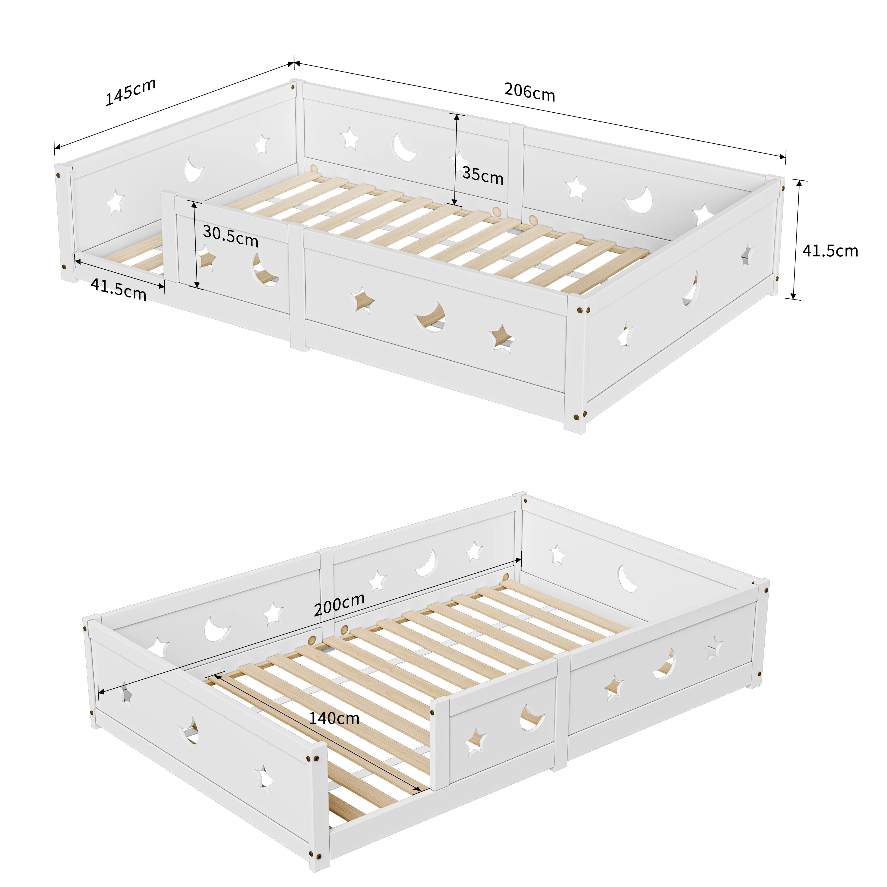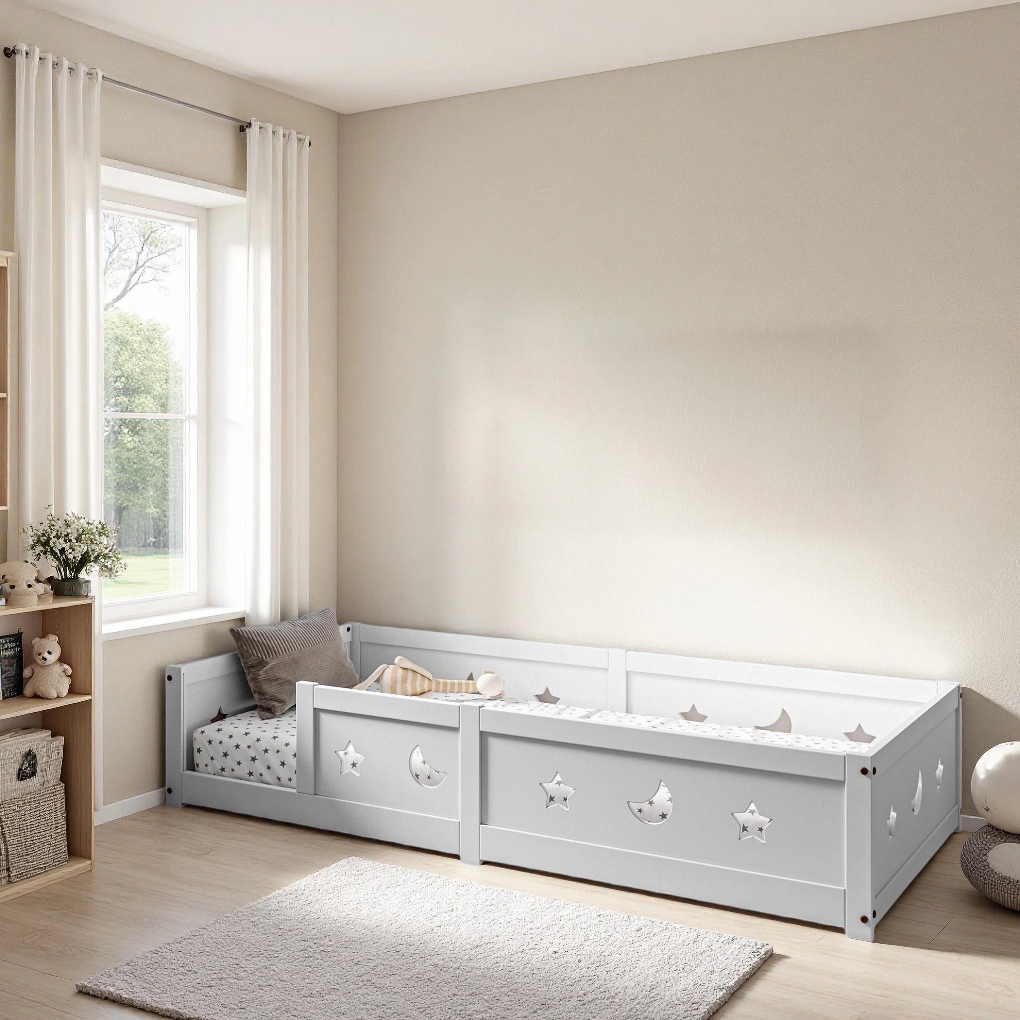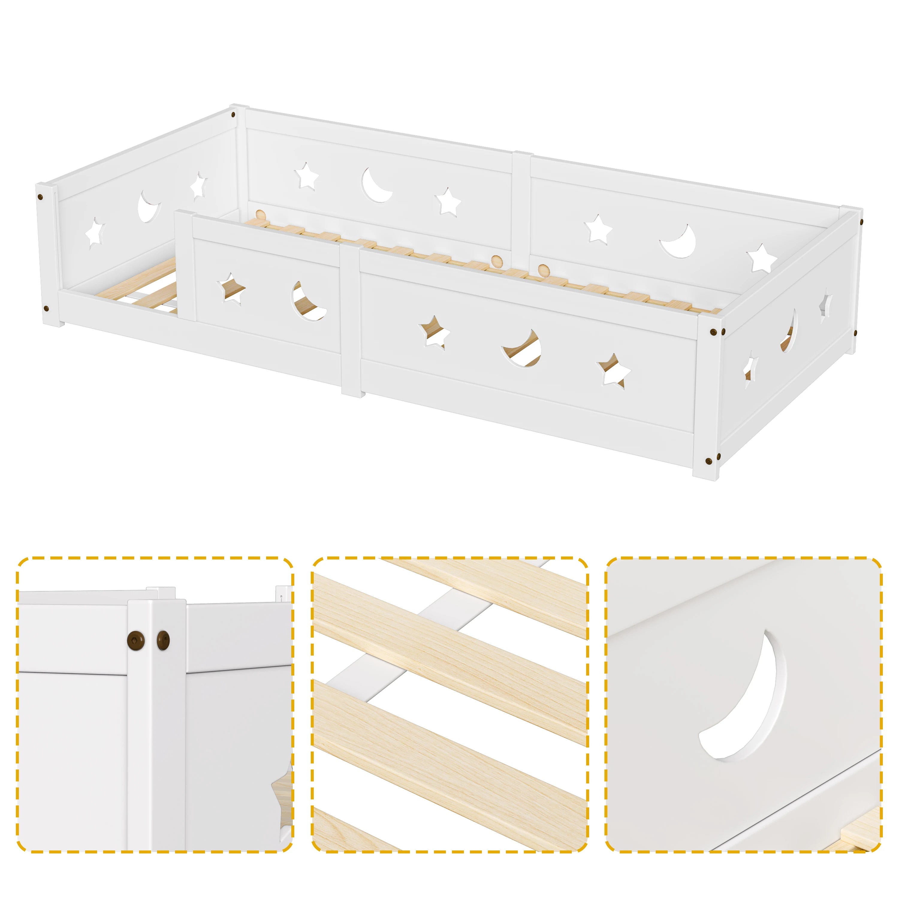 Letto per bambini Rosahqnda Floor 90x200 cm, con protezione anticaduta, in legno massello di pino bianco, letto a terra Montessori per ragazzi e ragazze