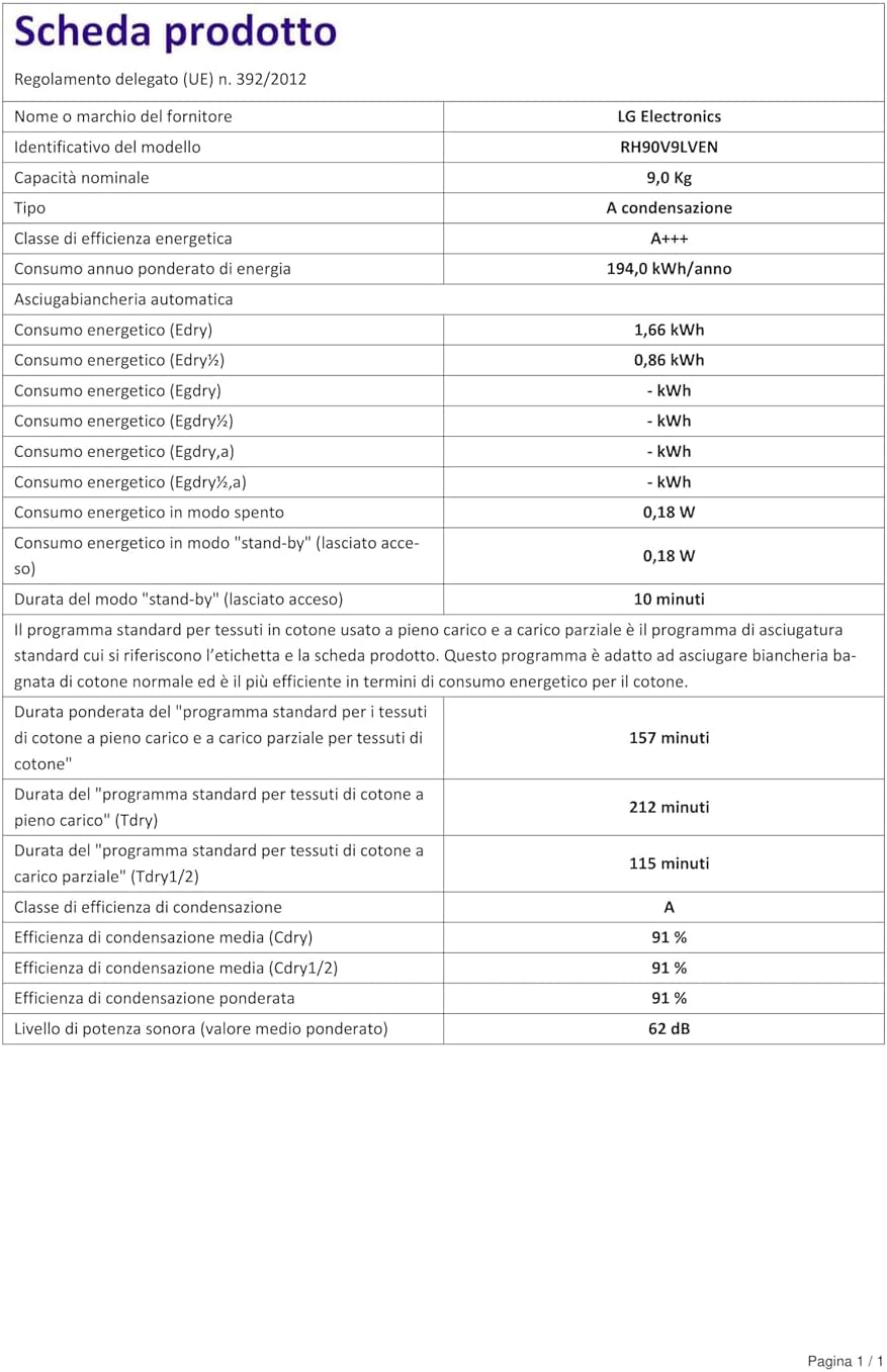 LG RH90V9LVEN Asciugatrice Smart a Carica Frontale 9kg, Serie V9, Classe A+++, Condensazione con Pompa di calore DUAL Inverter, Eco... Per saperne di più