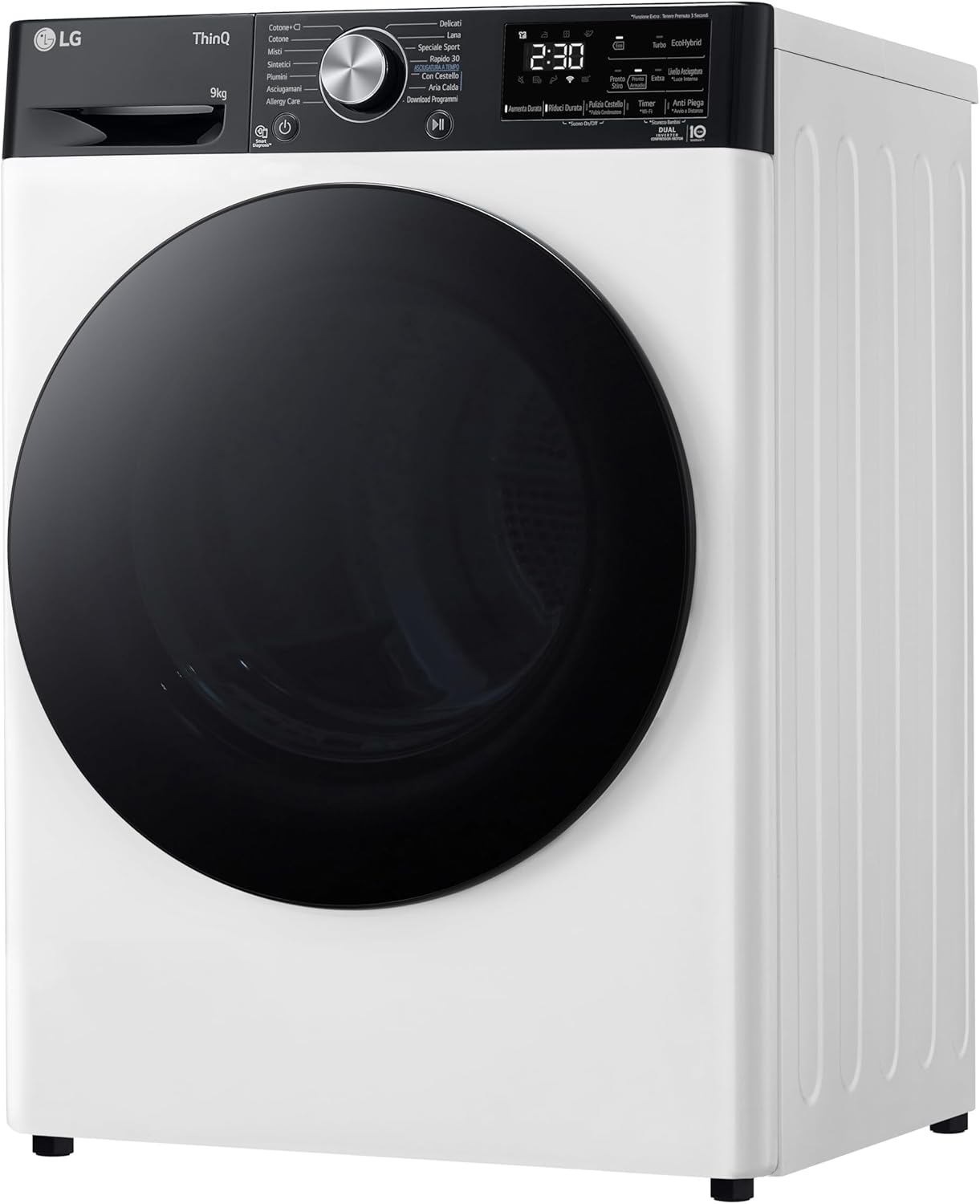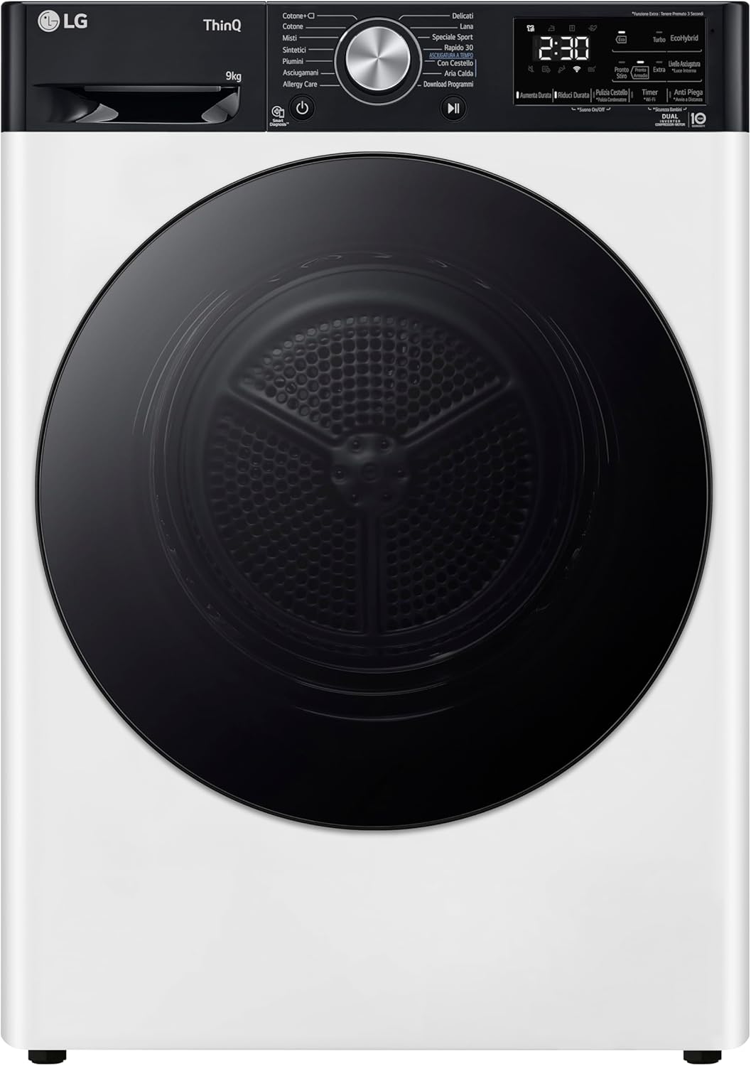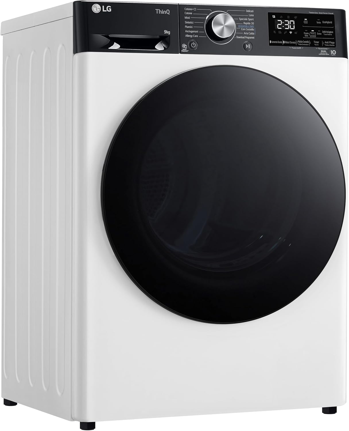 LG RH90V9LVEN Asciugatrice Smart a Carica Frontale 9kg, Serie V9, Classe A+++, Condensazione con Pompa di calore DUAL Inverter, Eco Hybrid, Condensatore autopulente, Allergy Care, Wi-Fi, Bianca