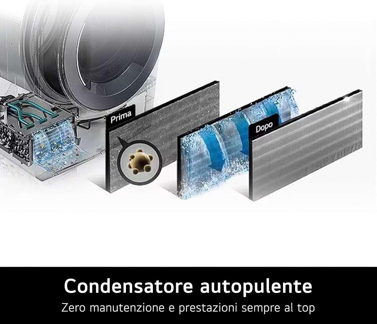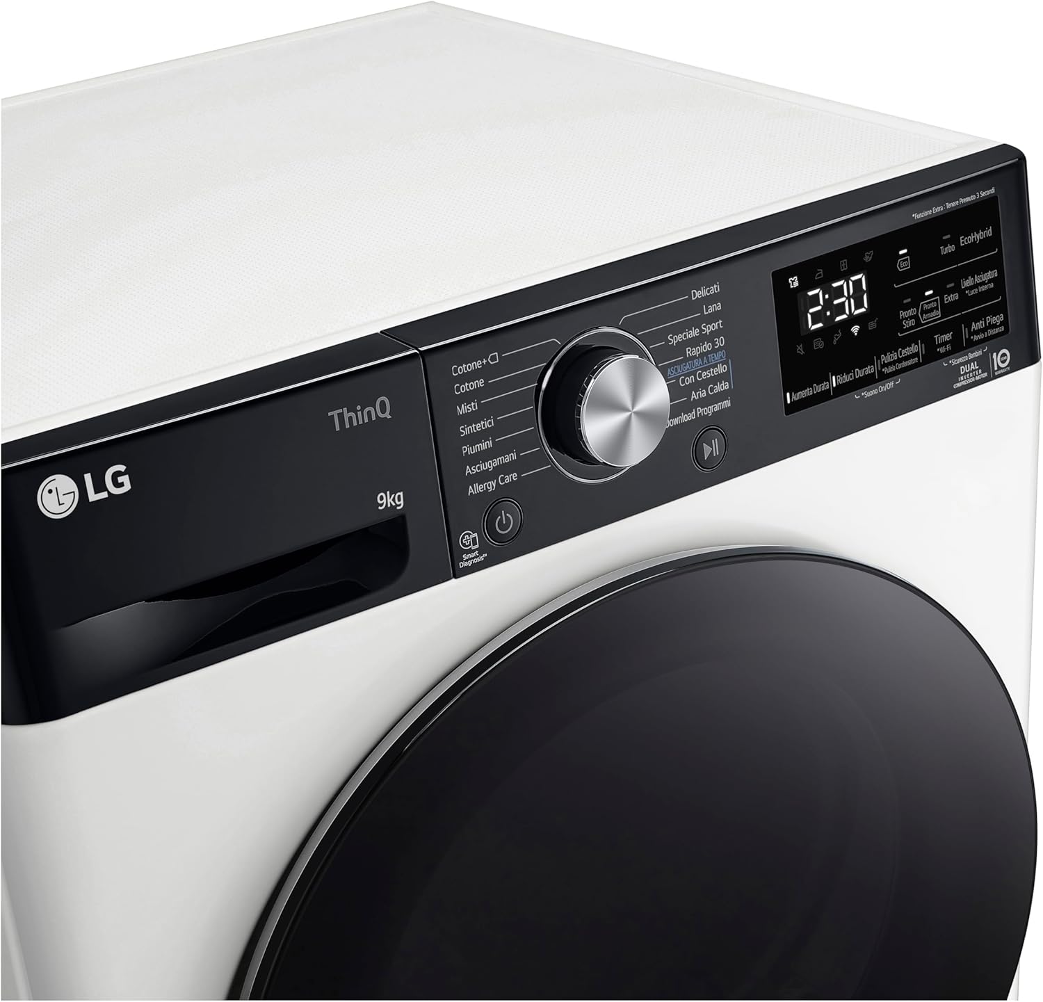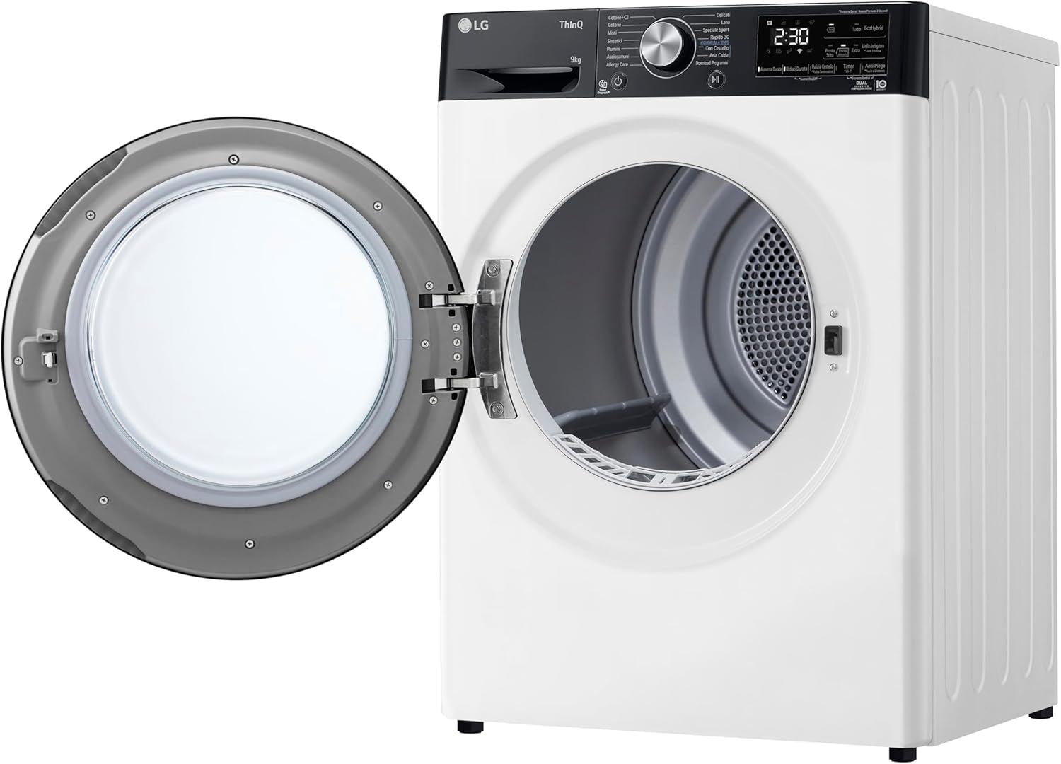 LG RH90V9LVEN Asciugatrice Smart a Carica Frontale 9kg, Serie V9, Classe A+++, Condensazione con Pompa di calore DUAL Inverter, Eco Hybrid, Condensatore autopulente, Allergy Care, Wi-Fi, Bianca