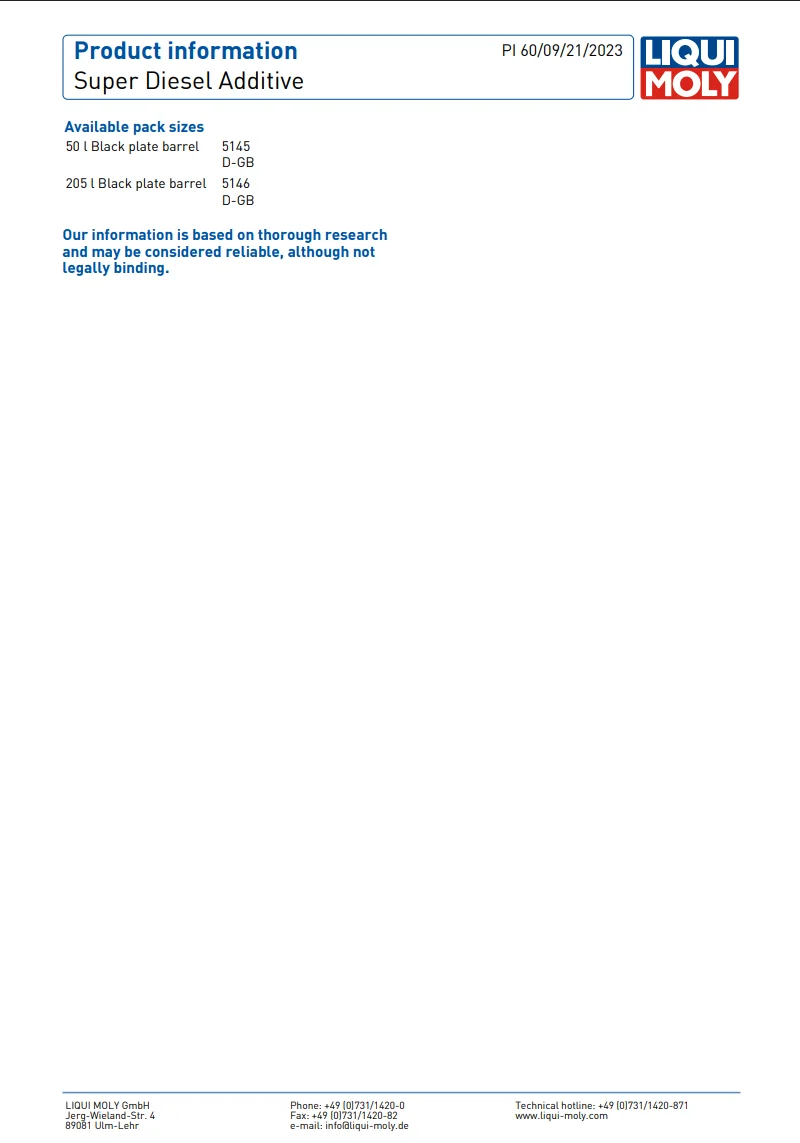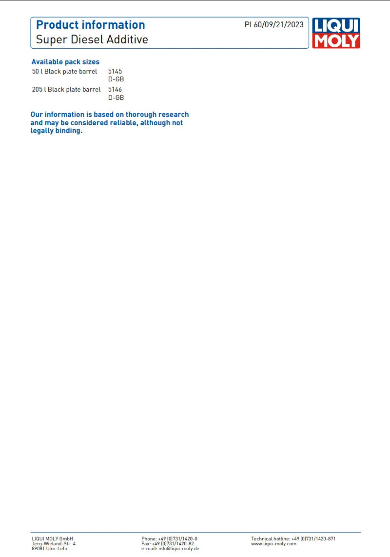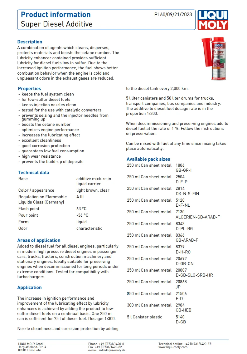 SPECIFICATIONSMarca: QDTOOLOrigine: DE(Origine)Prodotti chimici ad alto impatto: NessunoTipo: Altro Additivo super diesel LIQUI MOLY Flacone da 250 ml ... Per saperne di più