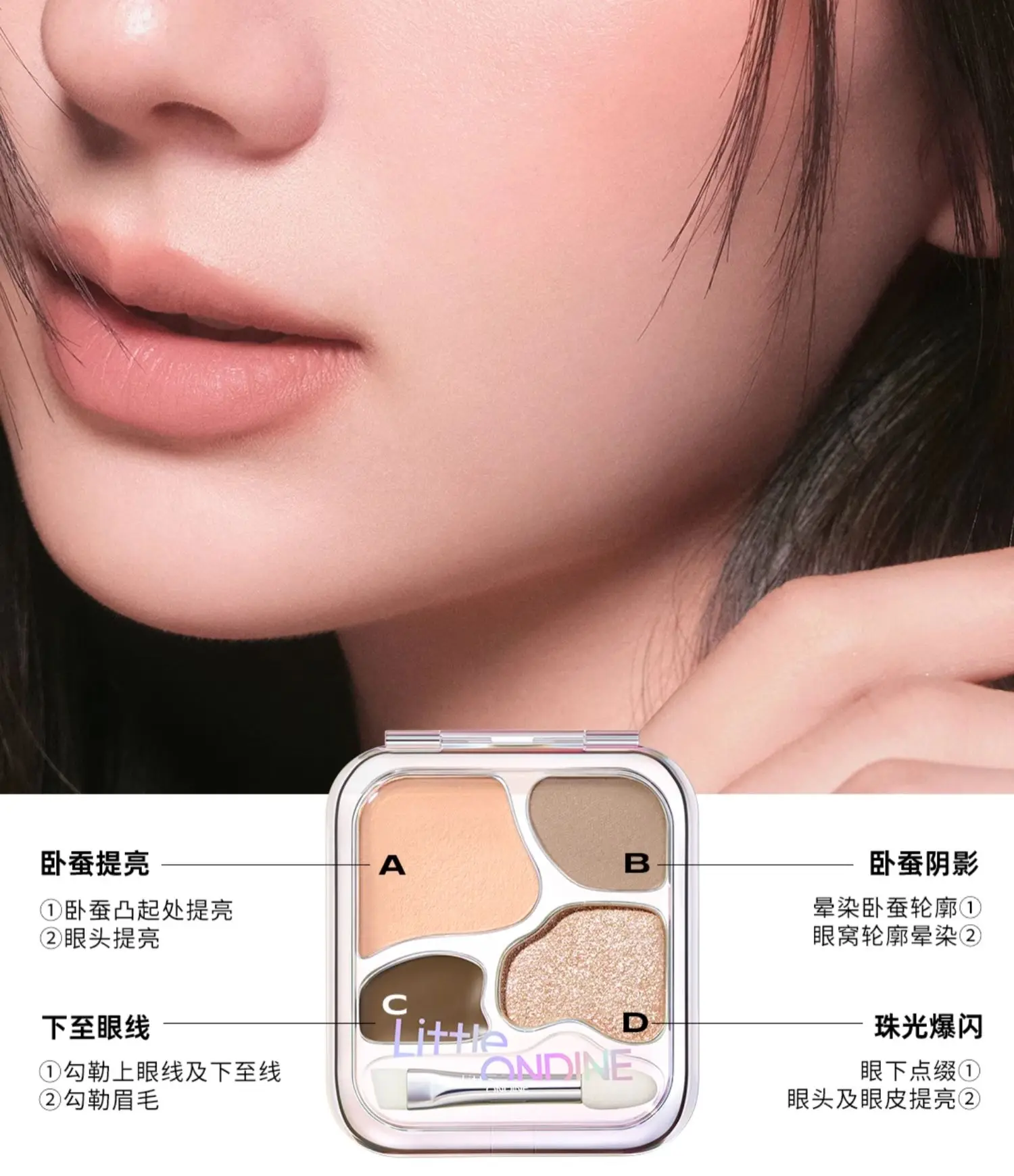 Little Ondine Four Colour Eye Shadow Undercover Powder Palette Highlighting Natural Nudes Korean Makeup Glitter Eyeshadow