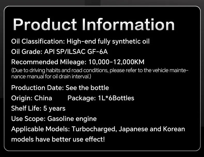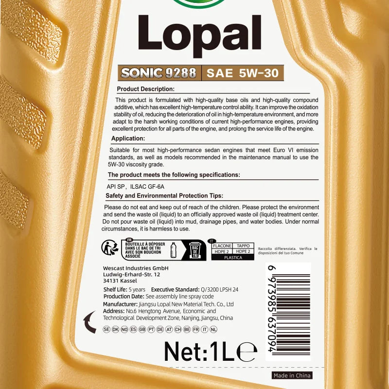 Lopal SONIC 9288, 5W-30, SP, GF-6A 1L * 1 Bottiglie Olio Motore Auto 1L Lubrificante Olio Motore Sintetico Completo per Auto Protezione Avanzata