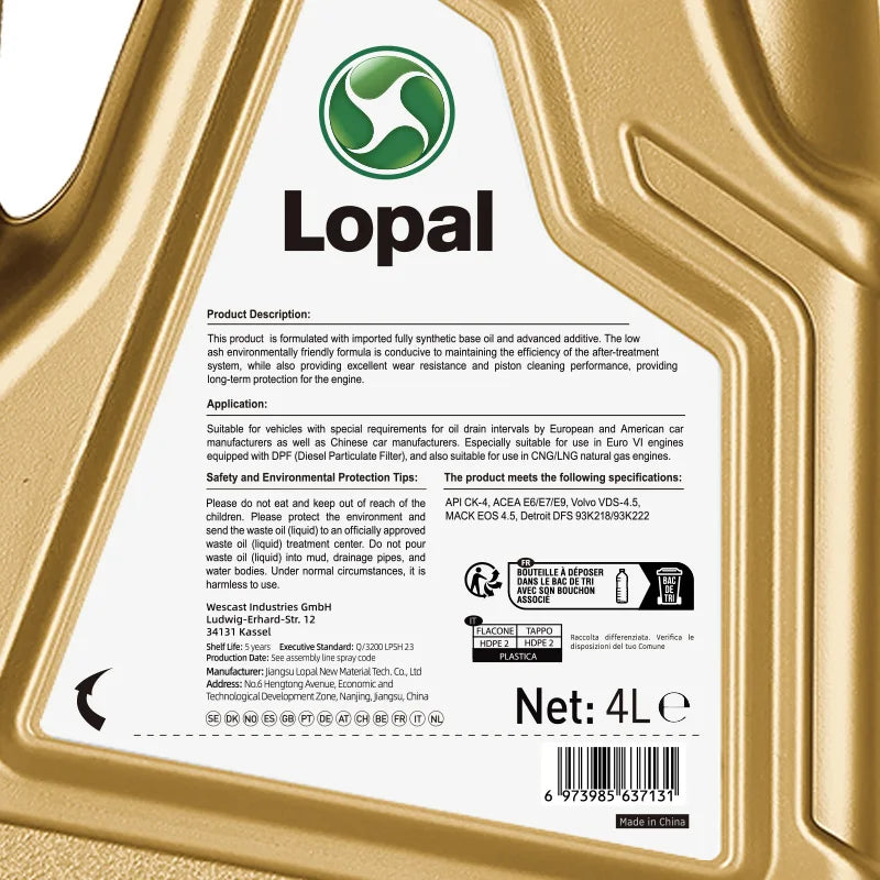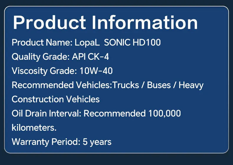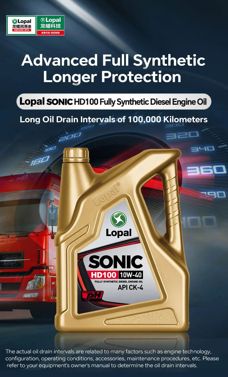 Lopal SONIC HD100 10W-40 CK-4 4L * 1 Bottiglie Olio Motore Auto 4L Lubrificante Olio Motore Sintetico Completo per Auto Protezione Avanzata
