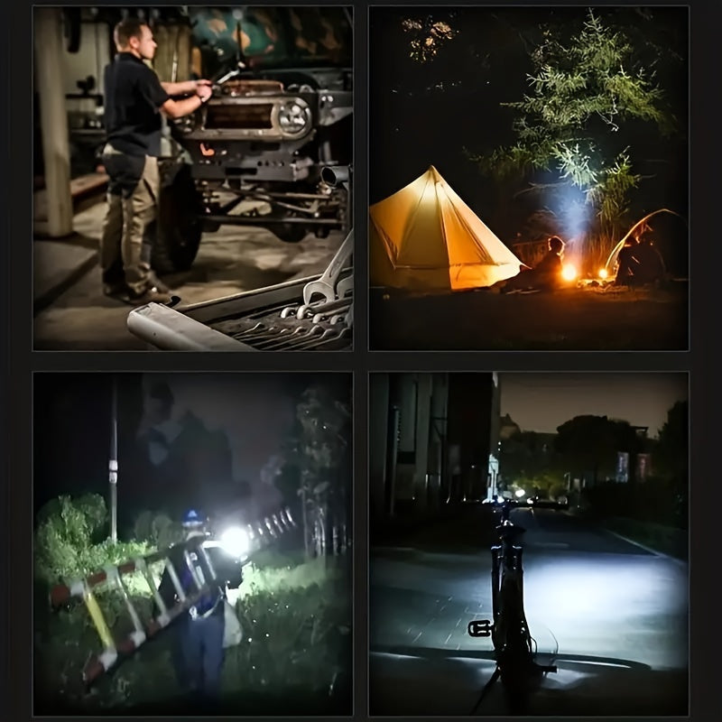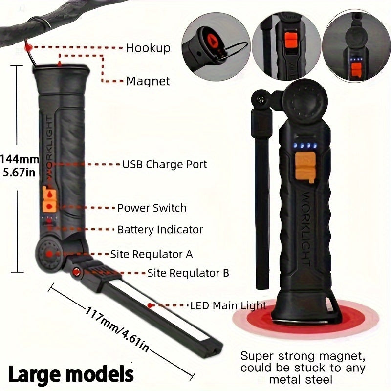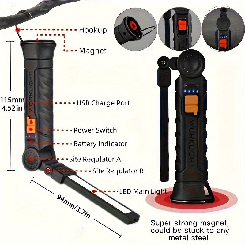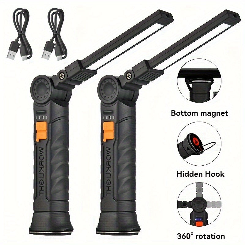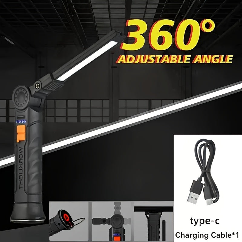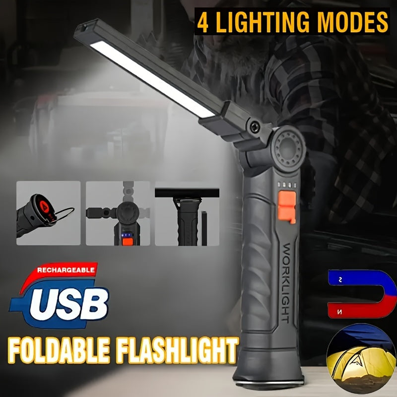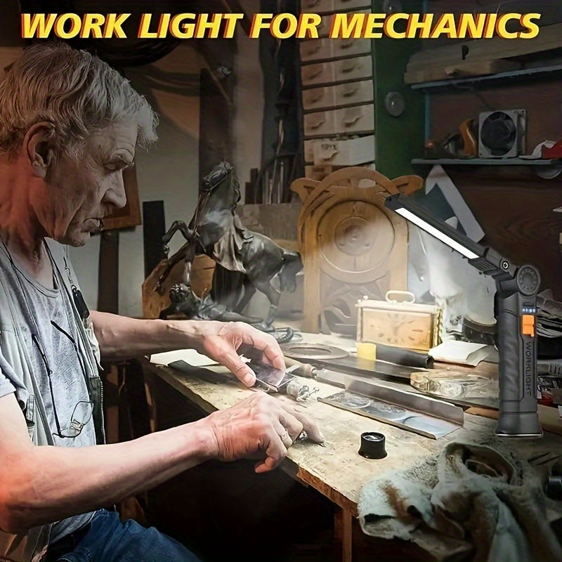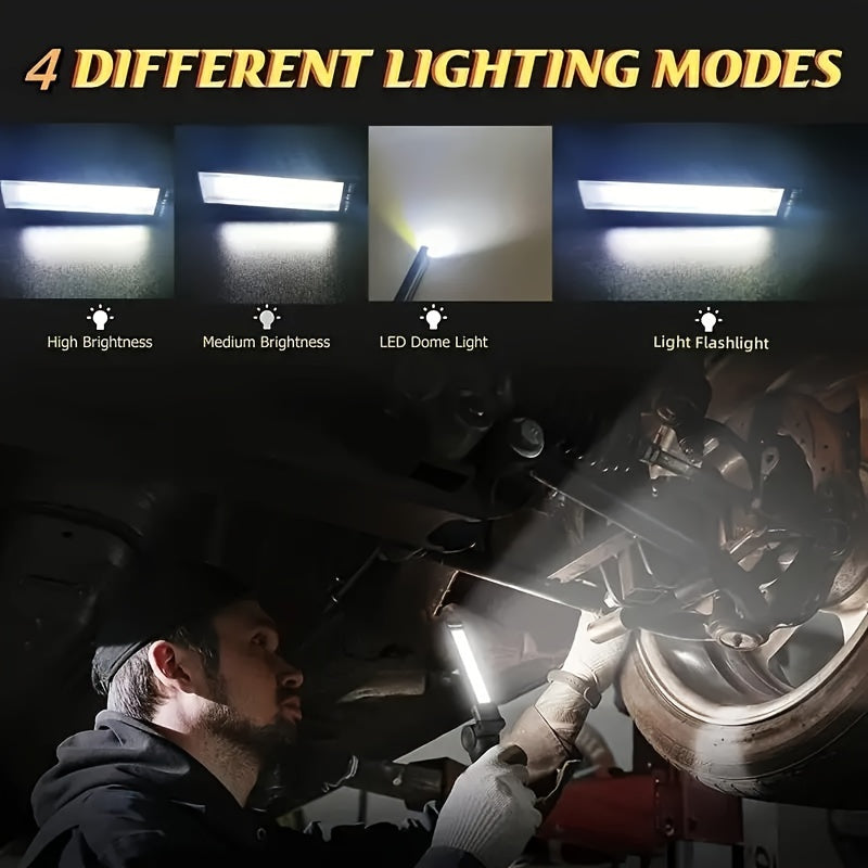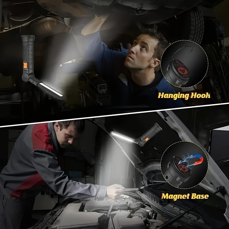 Luci da lavoro a LED con base magnetica, illuminazione multifunzione USB a 4 modalità, torcia potente per manutenzione in officina, rotazione a 360°, illuminazione versatile per riparazioni, attività all'aperto, regali di Natale, regali per uomini, ricari