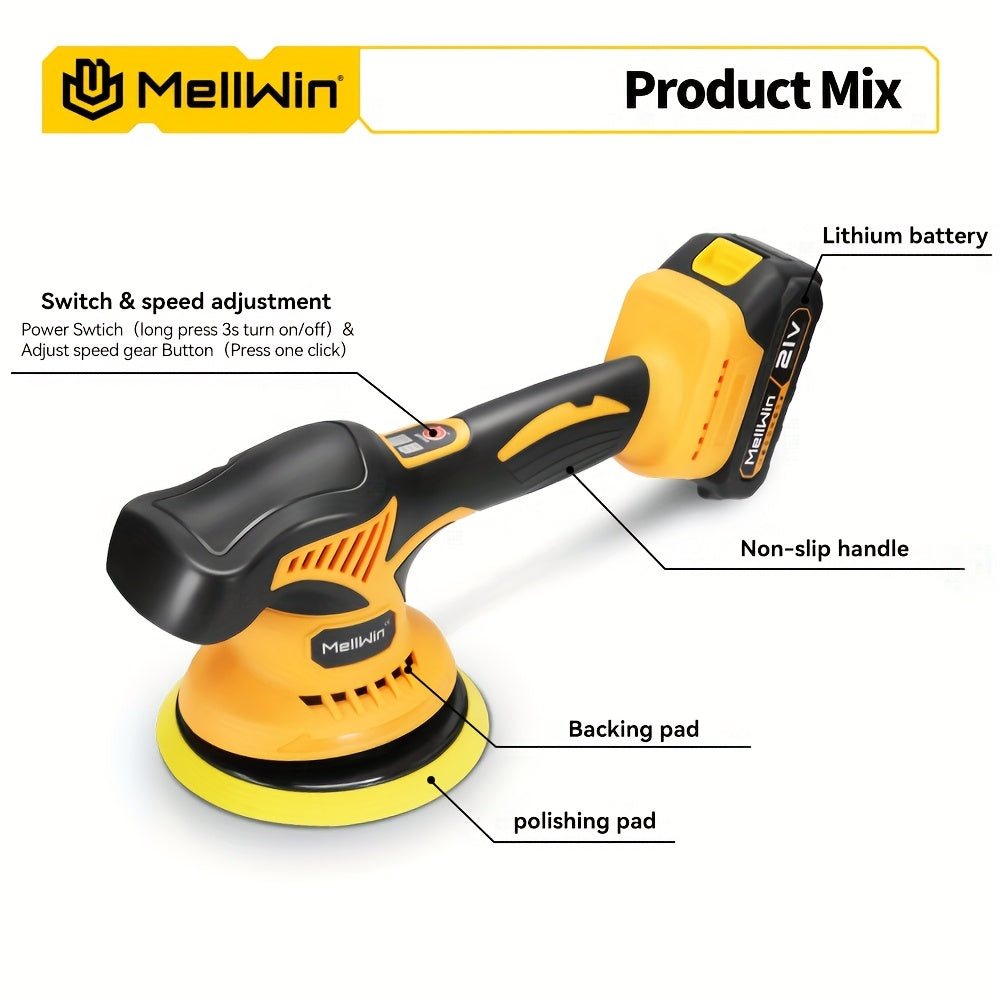 Lucidatrice a Buffer 21V, Lucidatore con Disco da Sabbia da 150mm per Dettagli Auto, Funzione di Lucidatura e Cera, Strumento Elettrico per Pulizia Muri Bagno Casa e Mobili, Regalo per Papà