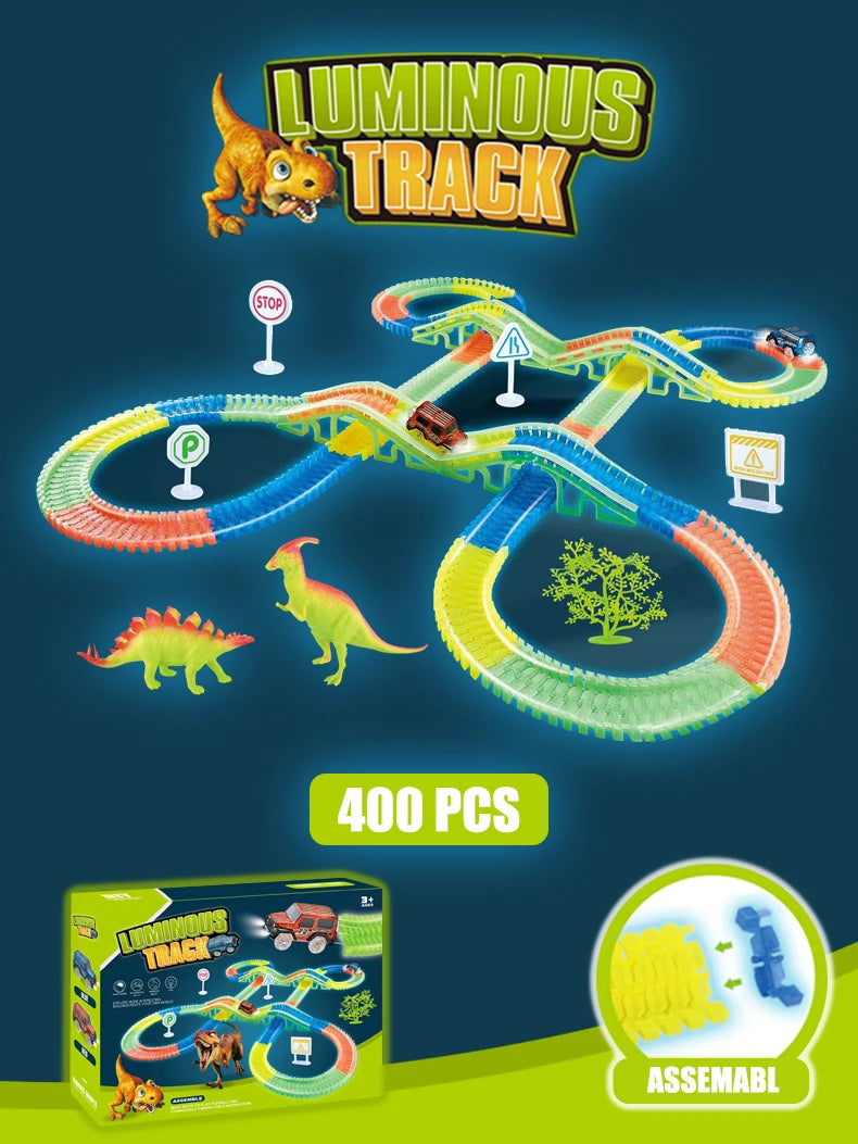 Luminoso Dinosaur Track AssemblyLittle Car Emit Light Mountain Road RailKids Puzzle giocattolo giocoso ragazzi regalo di compleanno di natale