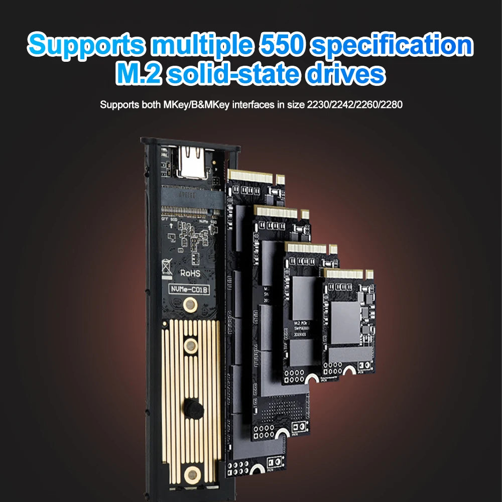M2 SSD Case M.2 NVMe SATA SSD Enclosure Adapter 10Gbps USB 3.1 Type C Dual Protocol External Enclosure Supports M And B&M Keys