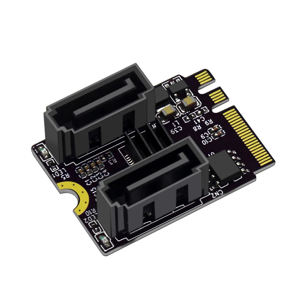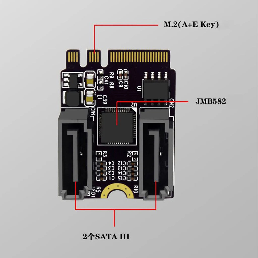 M2(A+E Key) to Dual Port SATA3.0 Expansion Card PCle 3.0 KEY A+E WIFI M.2 to SATA for NGFF 2230 SSD Adapter Card for PC Computer