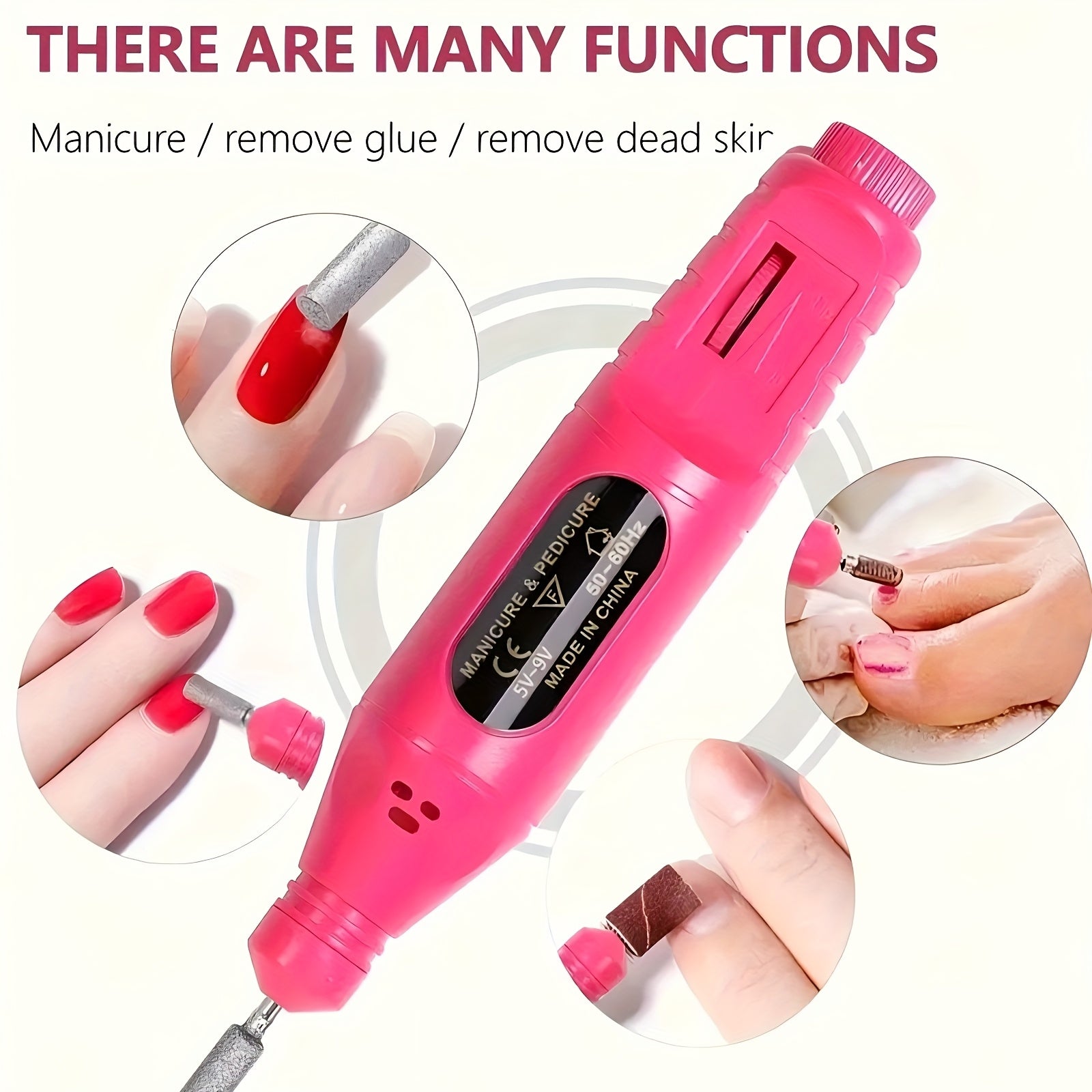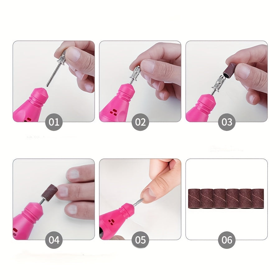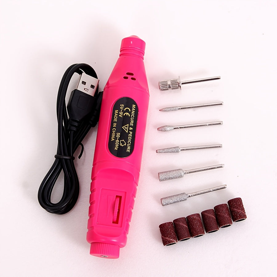 Macchina per Unghie in Stile Penna Ergonomica Migliorata - Lima Elettrica ad Alta Velocità Alimentata via USB con 4 Testine Intercambiabili e 20 Nastri di Carta Vetrata, Strumento Portatile Ipoallergenico per Manicure e Pedicure da Casa e Uso Professional