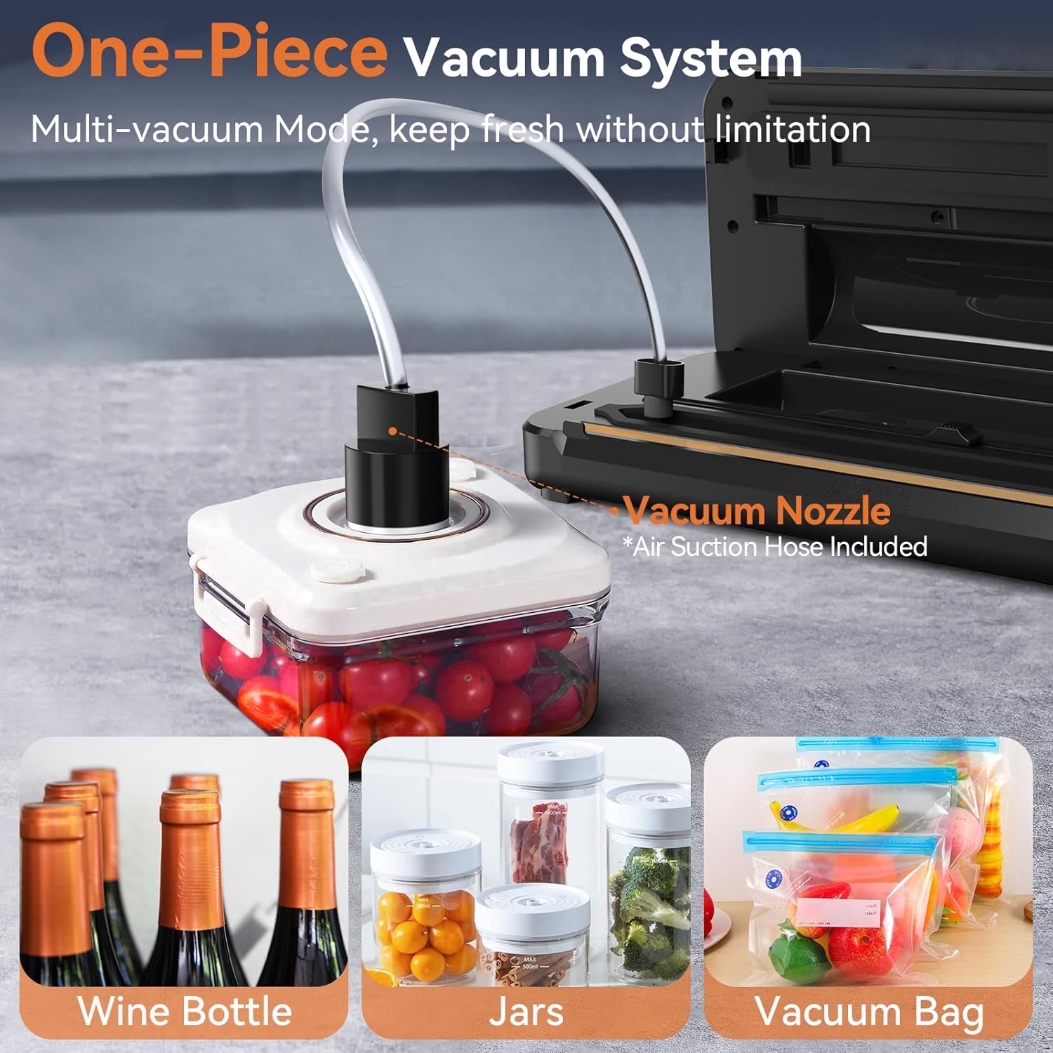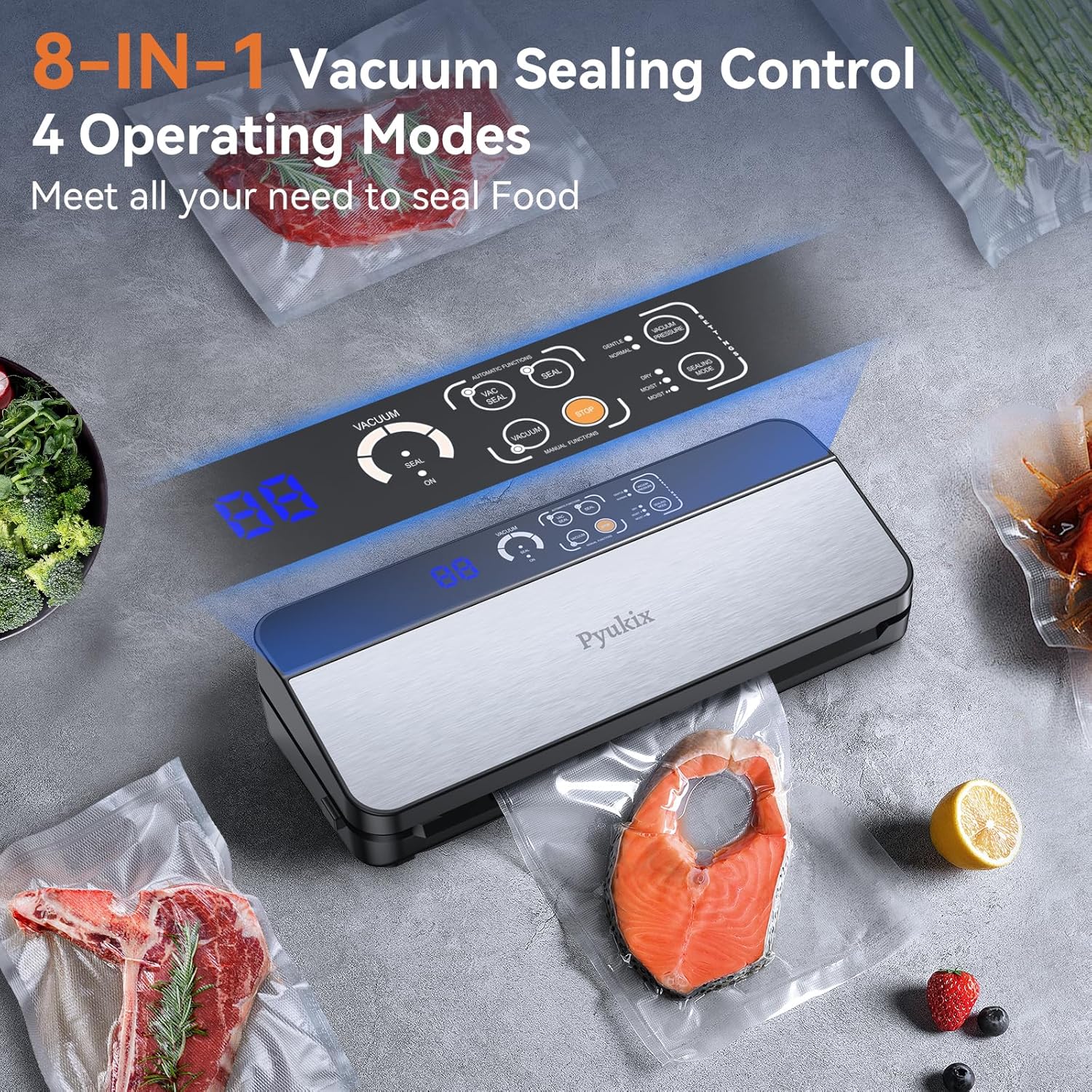 Macchina Sottovuoto Alimenti 8-IN-1, Professionale 80KPA Vuoto Veloce, Stoccaggio Rotoli con Taglierina, Tubo a Vuoto, Conto alla Rovescia Digitale, 2 Sacchetti in Rotolo e 11 Sacchetti Sottovuoto