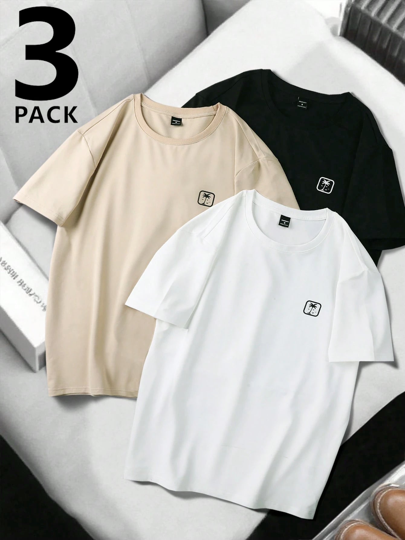 Manfinity Homme Men's Palm Tree Print Round Neck Loose Casual Short Sleeve T-Shirt T Shirt Pack Pack Shirts T Shirt Pack Men Men T Shirt Pack Tshirt Pack Men