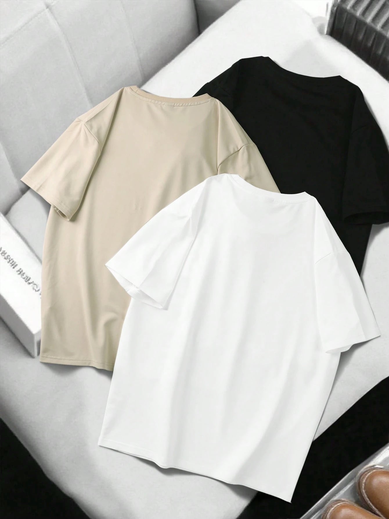 Sleeve Type:Drop ShoulderHem Shaped:RegularPattern Type:Letter, PlainSeason:SummerStyle:CasualDetails:PatchedColor:Black and WhiteNeckline:Round NeckSleeve Length:Short SleeveLength:RegularFit Type:Regular FitFabric Elasticity:Slight StretchMaterial:FabricComposition:95% Polyester, 5% ElastaneCare Instructions:Hand wash,do... Per saperne di più