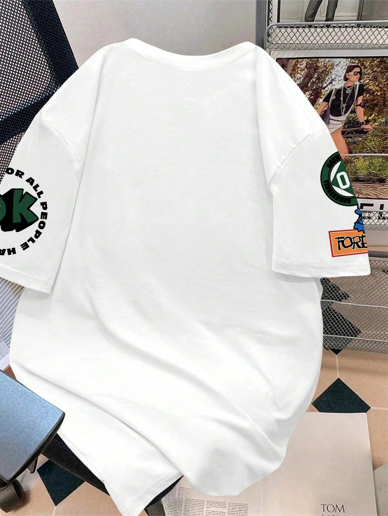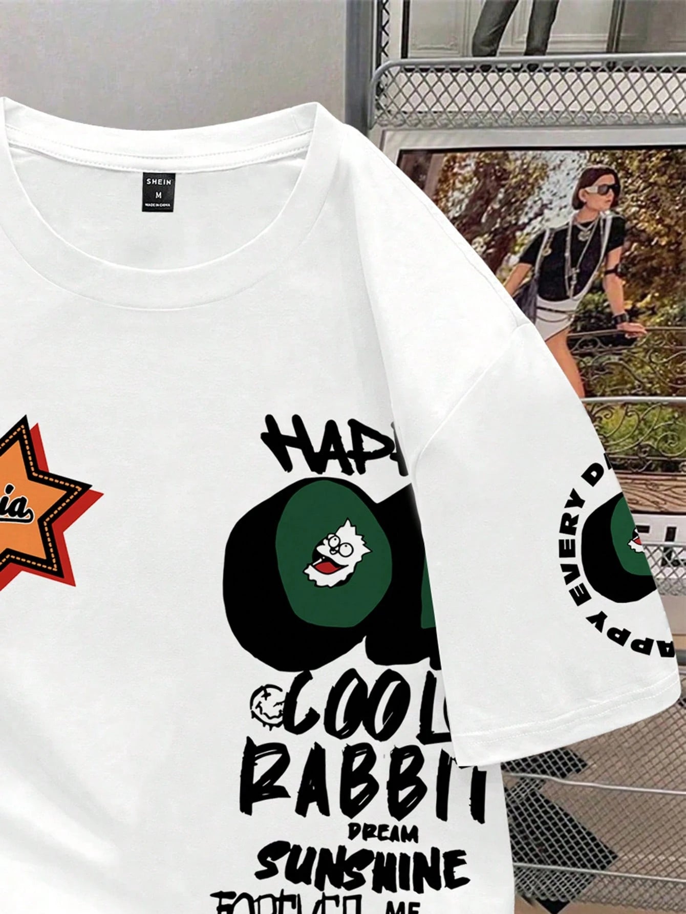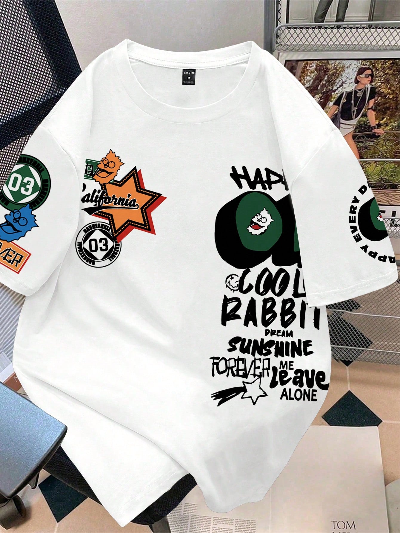 Sleeve Type:Drop ShoulderHem Shaped:RegularPattern Type:Animal, Cartoon, Halloween, LetterStyle:Casual - Playful & CuteSeason:SummerColor:WhiteNeckline:Round NeckSleeve Length:Short SleeveLength:RegularFit Type:Regular FitFabric Elasticity:Slight StretchMaterial:Knitted FabricComposition:95%... Per saperne di più