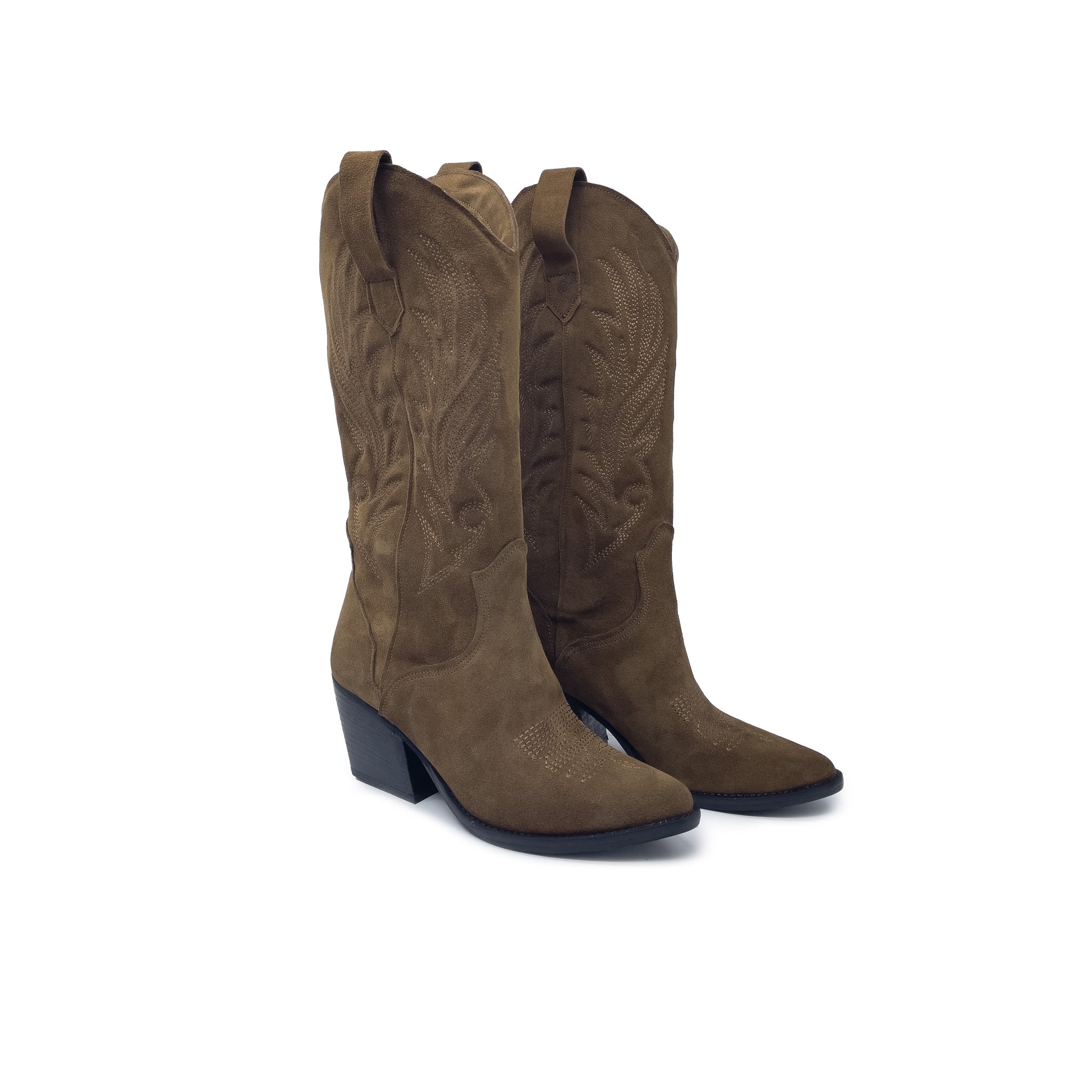 Il taglio al ginocchio slancia la figura, mentre le ricamate cuciture western tono su tono raccontano storie di tradizione e savoir-faire. Ogni dettaglio – dalla punta affusolata al caratteristico tacco cubano inclinato – è pensato per unire stile deciso e comfort duraturo. Le pratiche linguette laterali rendono la calzata facile e immediata, trasformando ogni outfit in un’espressione di carattere.