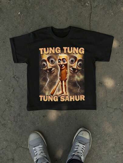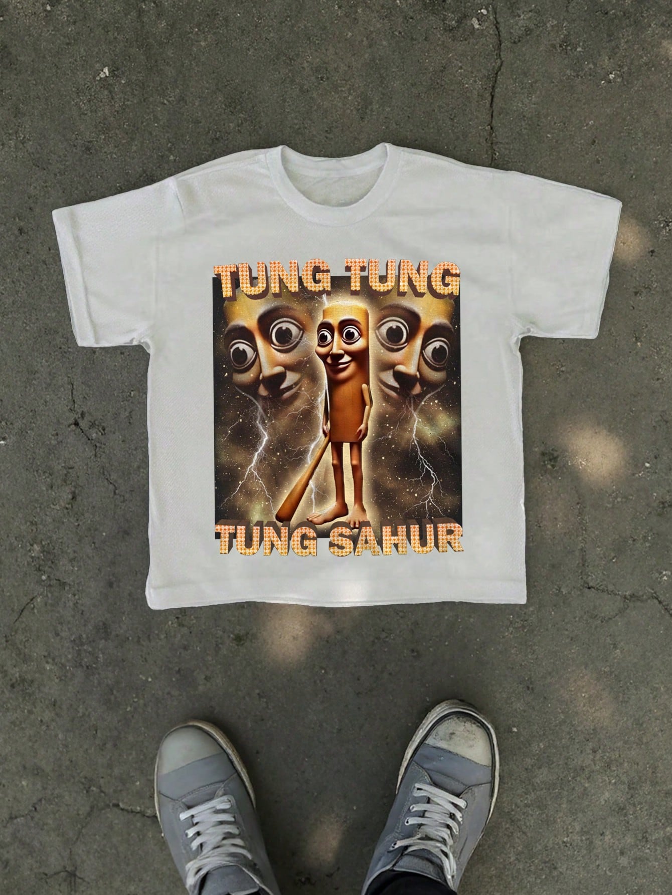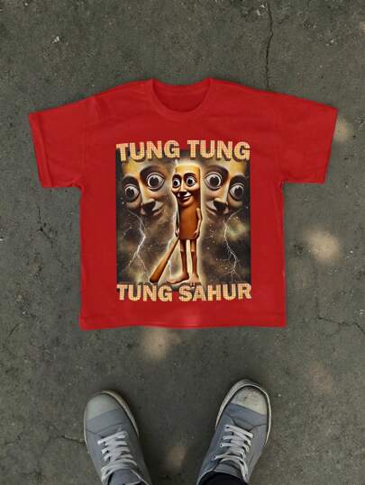 Men's Classic Summer Tung Tung Tun Sahur Funny Baseball Bat Meme Shirt, Casual Minimalist American Style Short Sleeve T-Shirt With Text Graphic