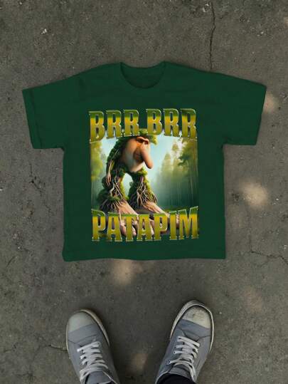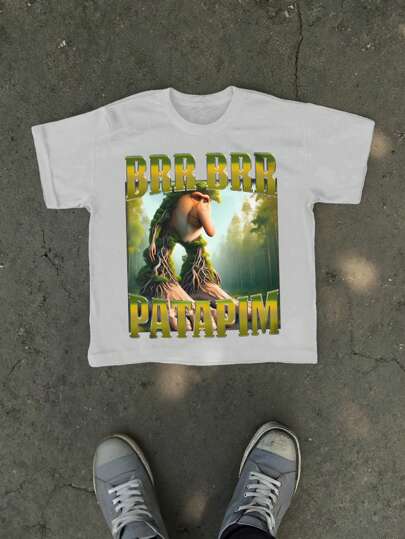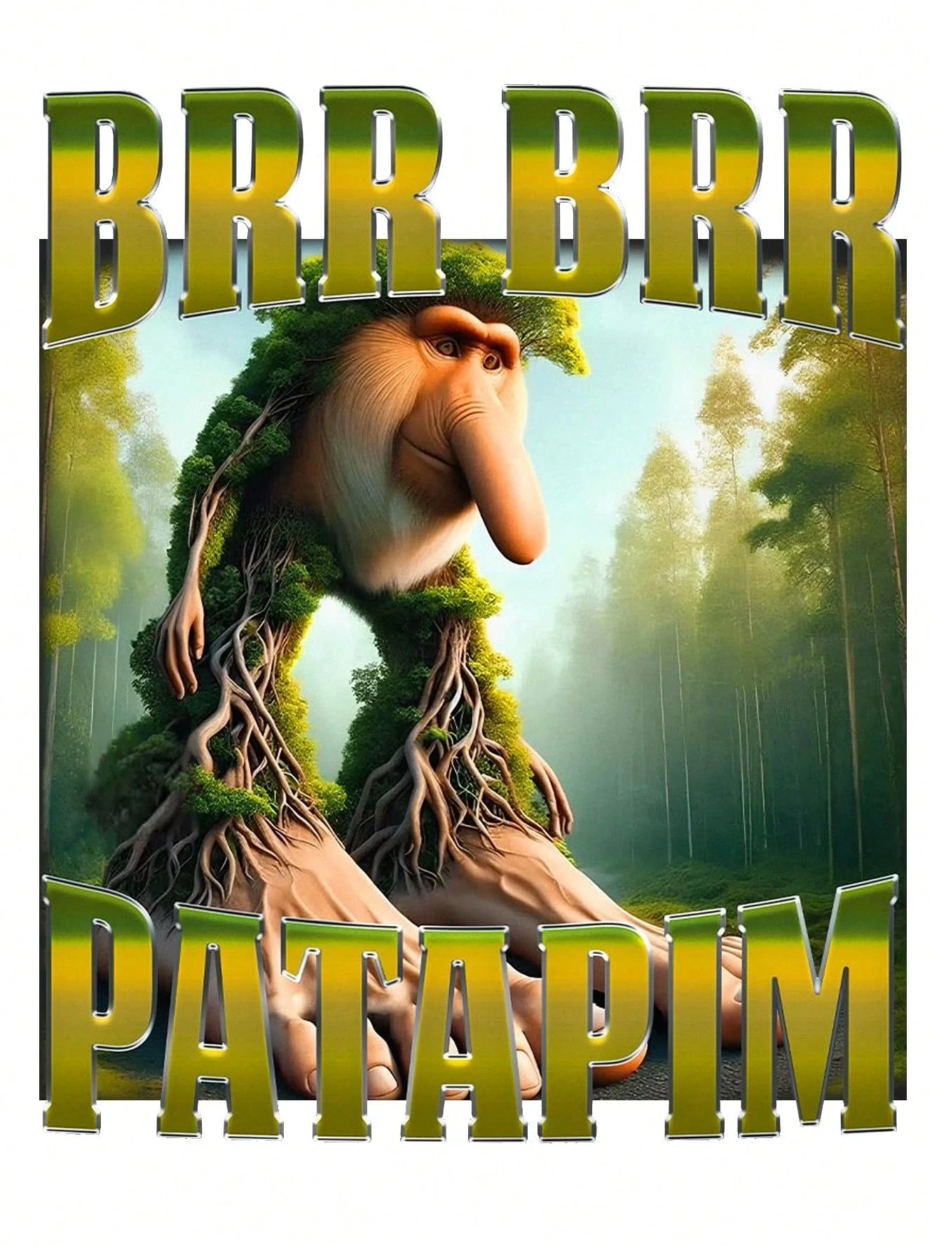 Men's Regular Brr Brr Patamin Italian Brainrot Unisex T-Shirt, Italian Brainrot Shirt, Brainrot Vintage Bootleg Shirt, Unhinged Clothes, Weird Tee T-Shirt Casual American Minimal Graphic English Slogan Print Crew Neck Short Sleeve