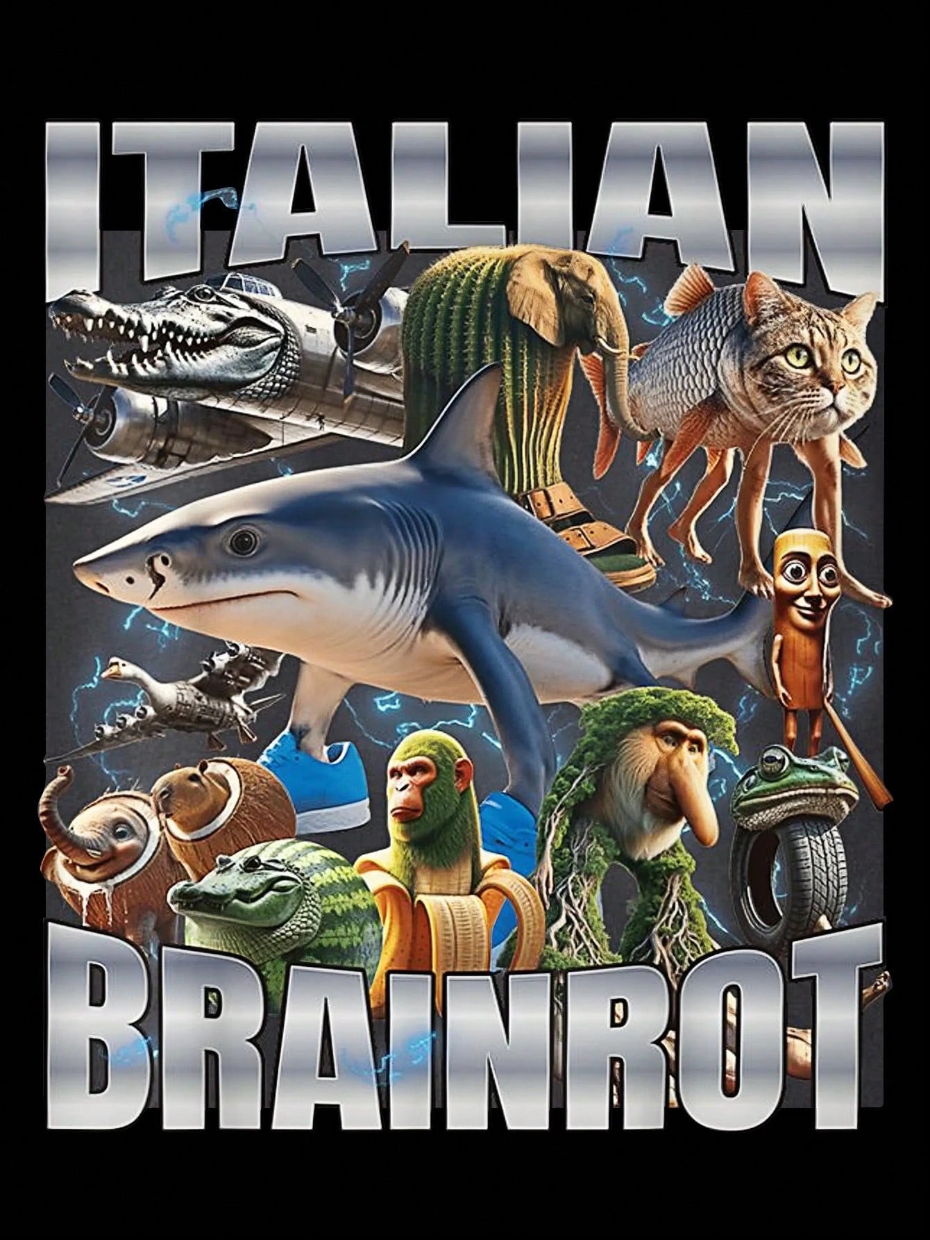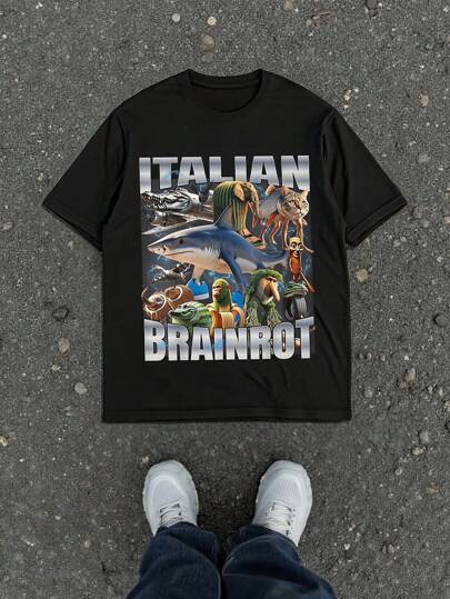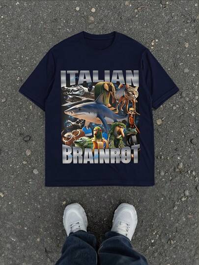 Men's Regular Fit "Brainrot" T-Shirt, "Dank Memes" T-Shirt, "Brainrot" Shirt, "Unhinged Clothes", Funny Meme Graphic Print Crew Neck Short Sleeve Casual American Minimalist T-Shirts