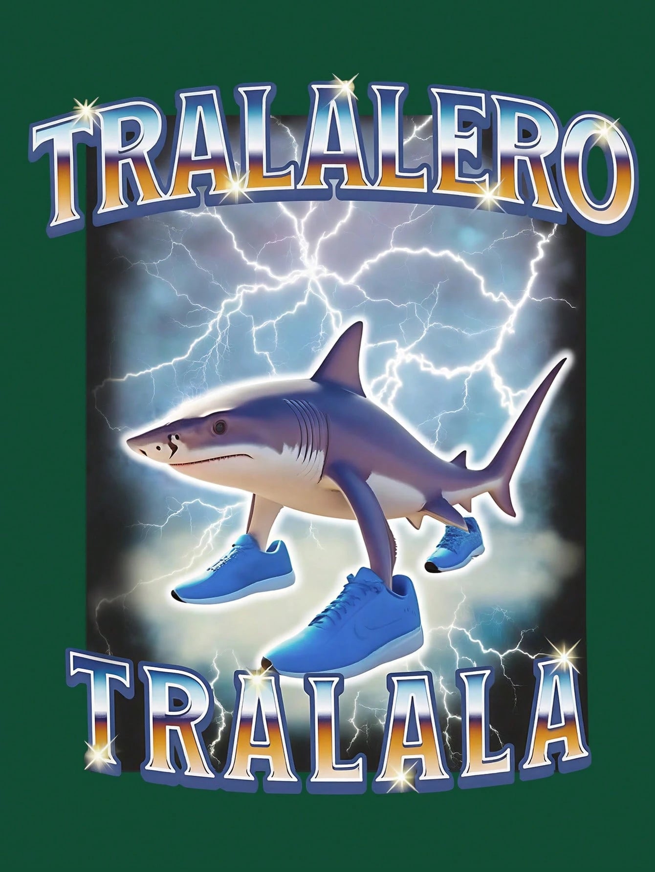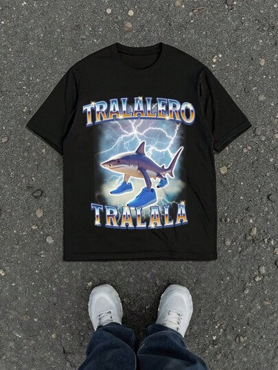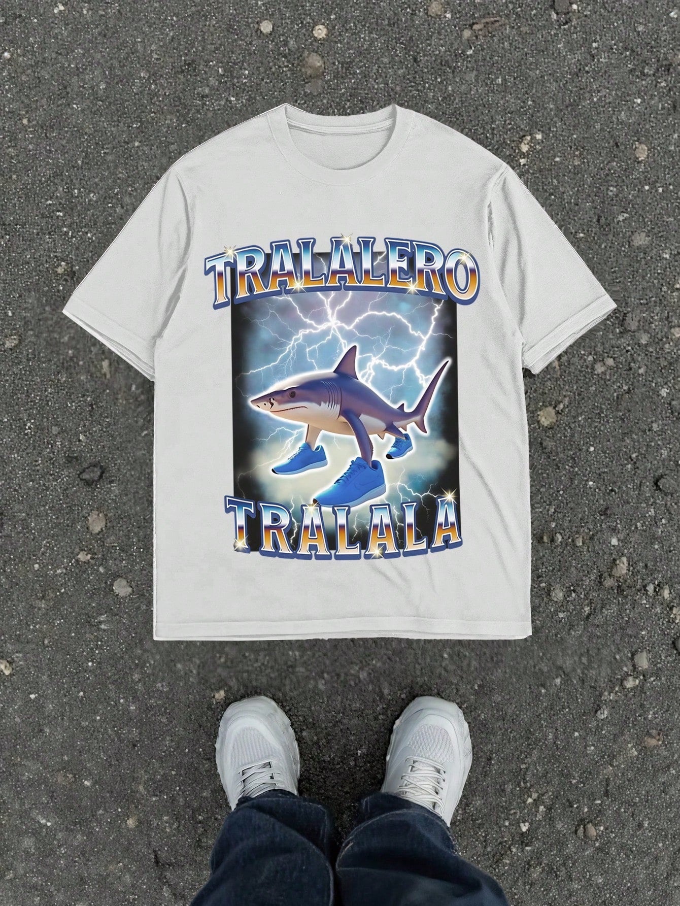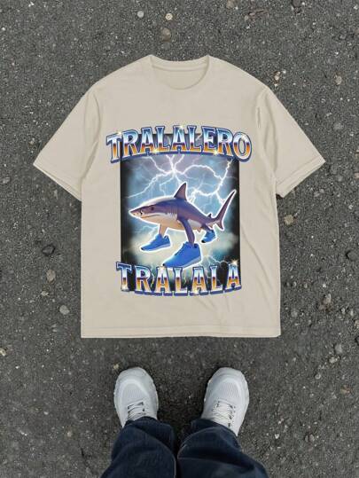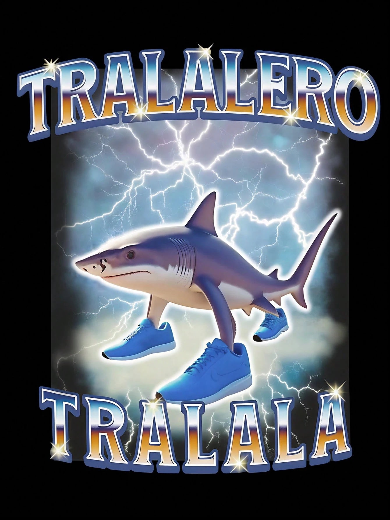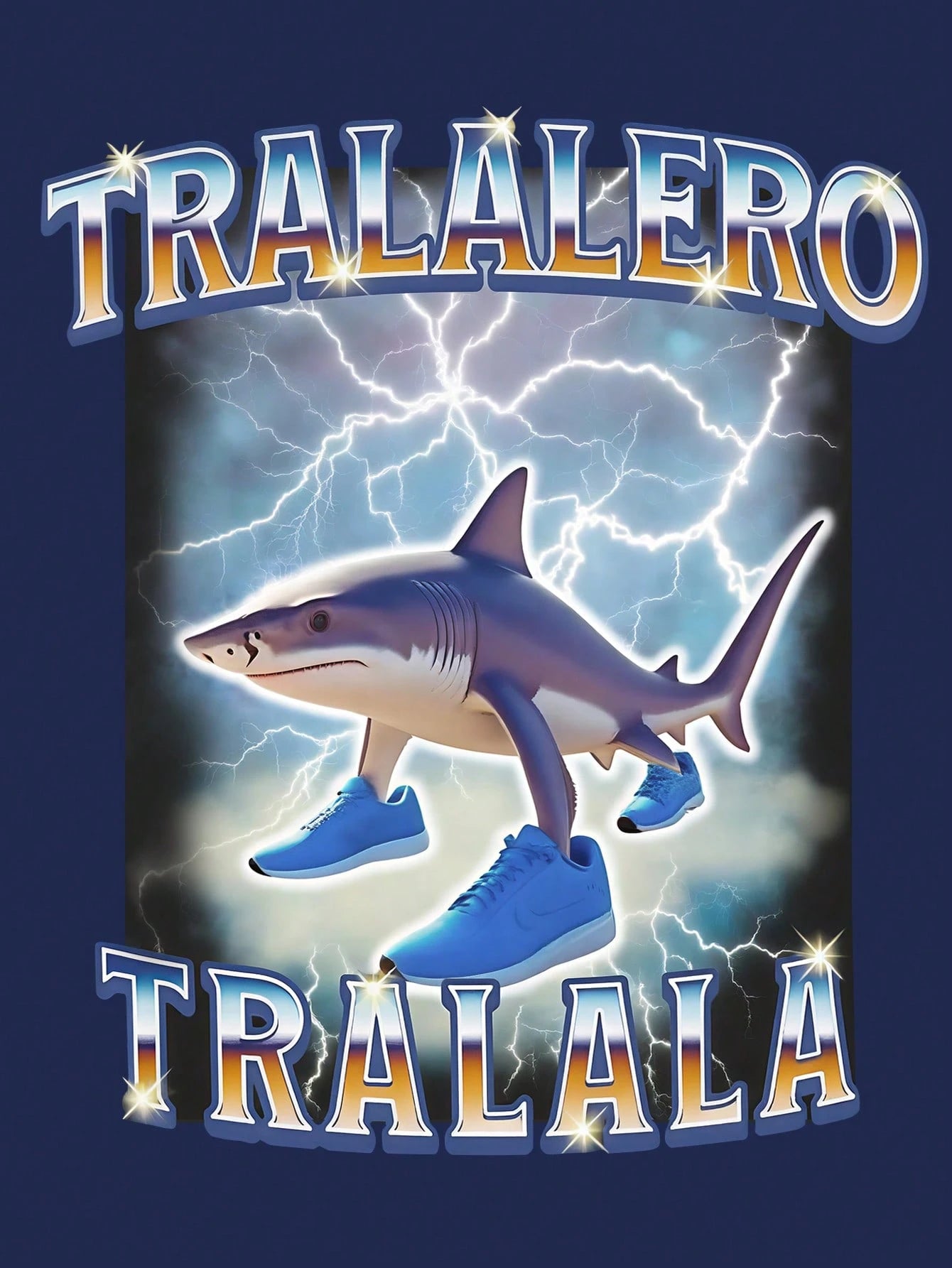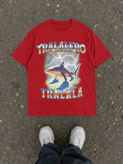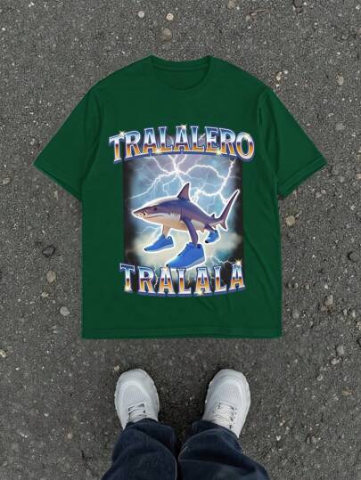 Men's Regular Fit Tralalero Tralala Funny Gen Alpha Shark Meme Graphic T-Shirt, Casual American Style Minimalist Short Sleeve Crew Neck Tee With Printed English Slogan