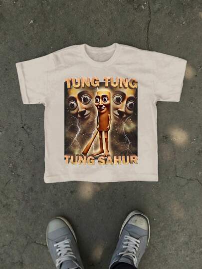 Men's Summer Casual Tung Tung Tung Sahur Funny Baseball Bat Meme Graphic T-Shirt, Minimalist American Style Short Sleeve Printed Round Neck Tee, Cute Top