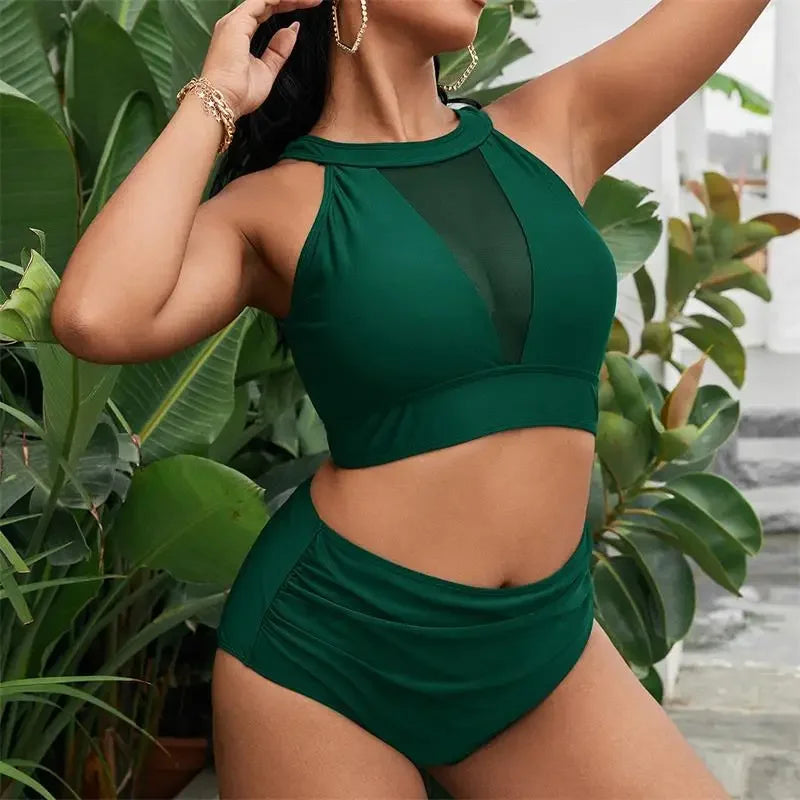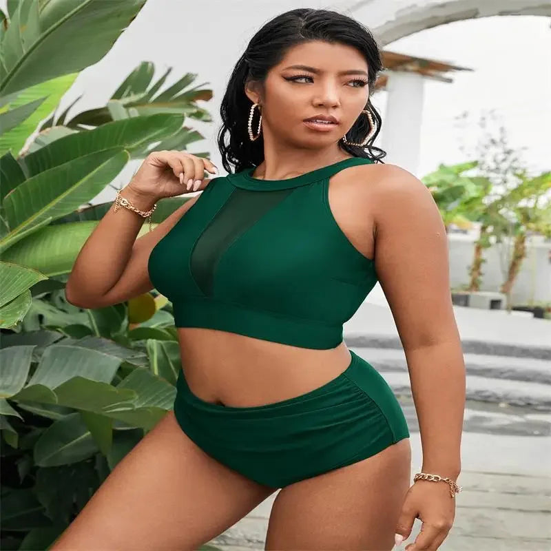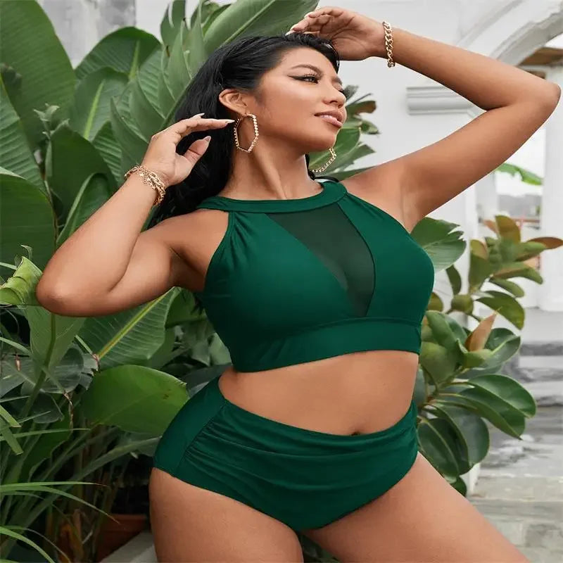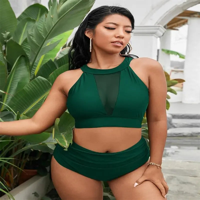 Mesh Patchwork 2 Piece Plus Size Bikini Set Women Large Swimsuit Brazilian High Waist Swimwear Chubby Curvy Bathing Suit