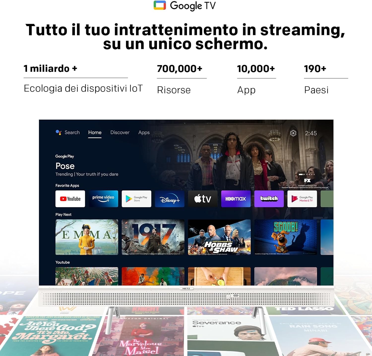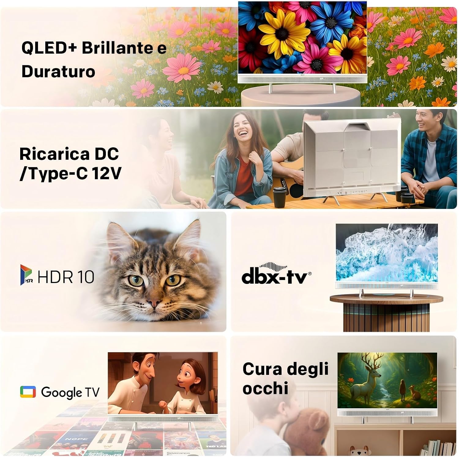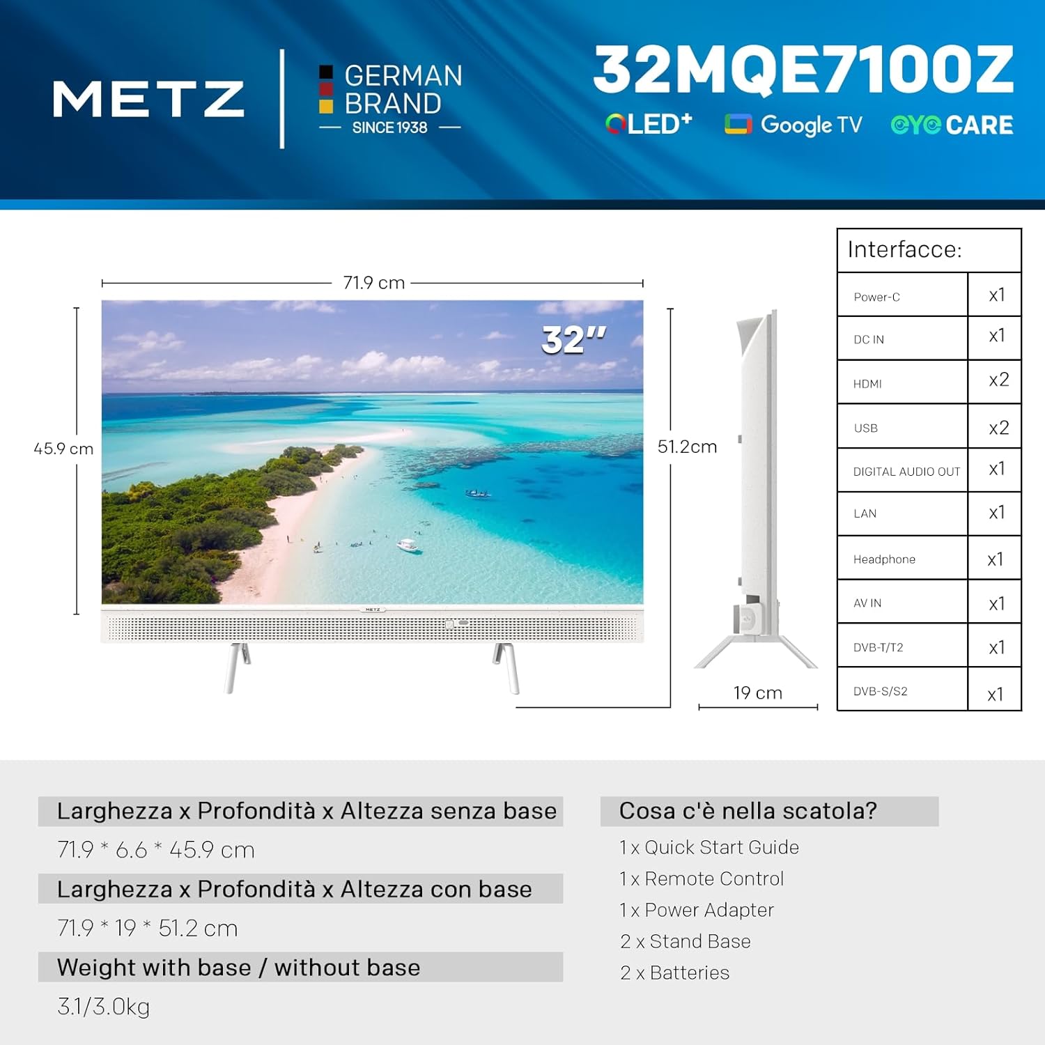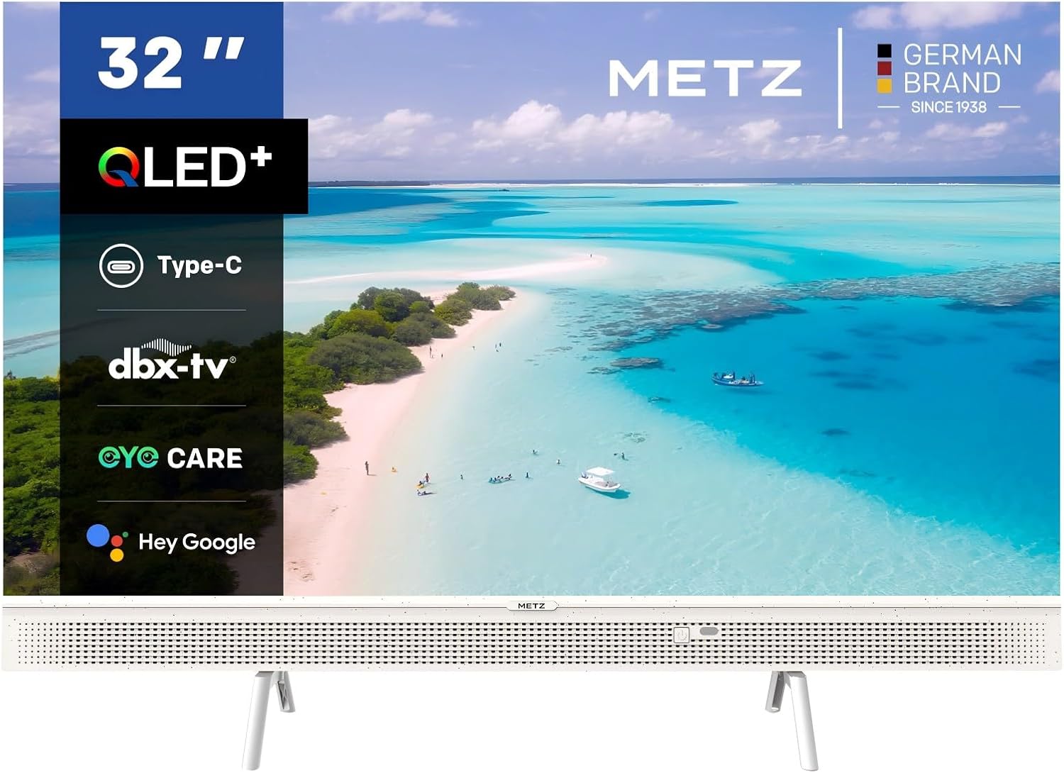 Metz 32 Pollici Smart TV QLED, 32MQE7100Z Televisione Portatile, Power-C (Compatibile con Power Bank), HDR10, dbx-TV, Dolby Audio, Chromecast, Controllo Vocale,Tuner DVB-T/T2/C/S/S2/Analogico