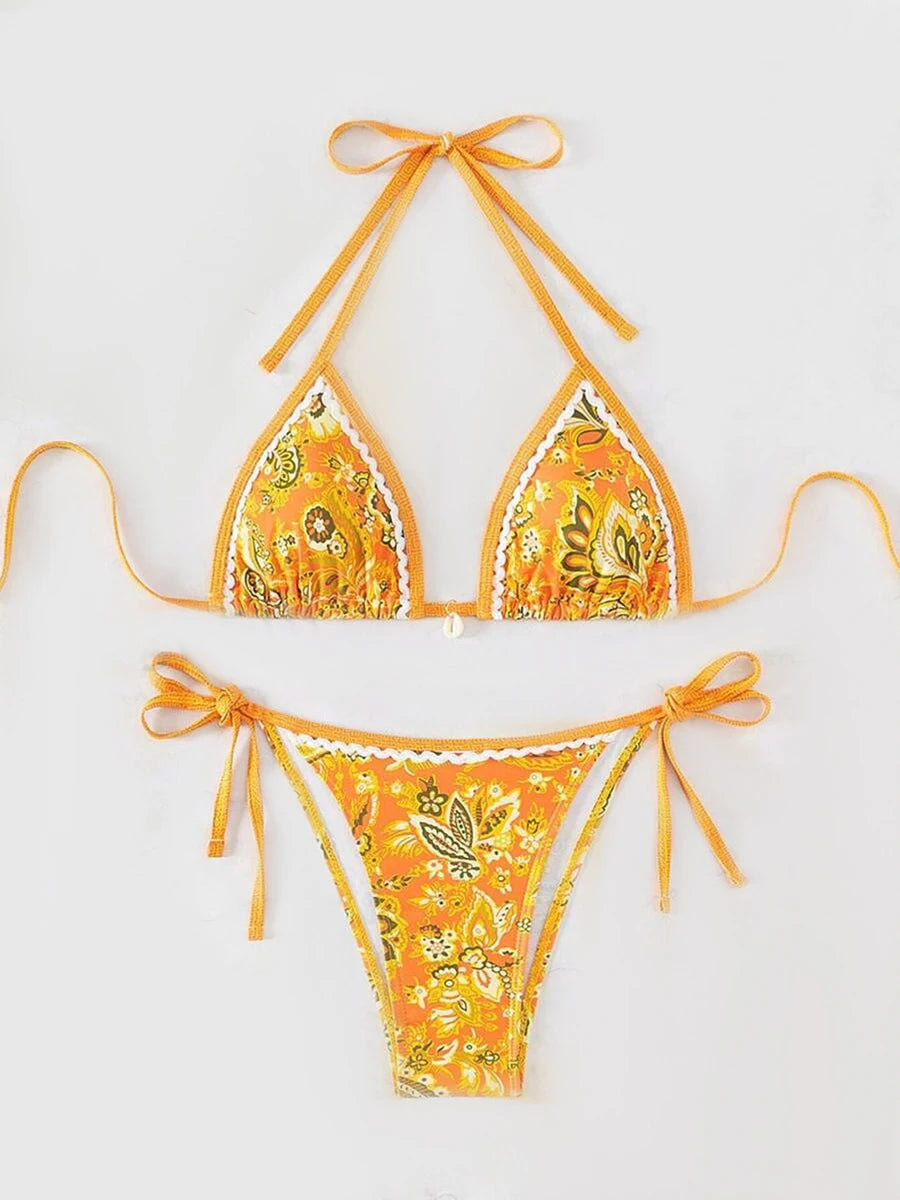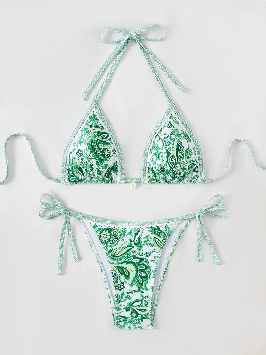 Micro Bikinis Sexy Women Swimsuits Swimwear Halter String Triangle Bikini Print Bathing Suit Beachwear Brazilian Biquini Female