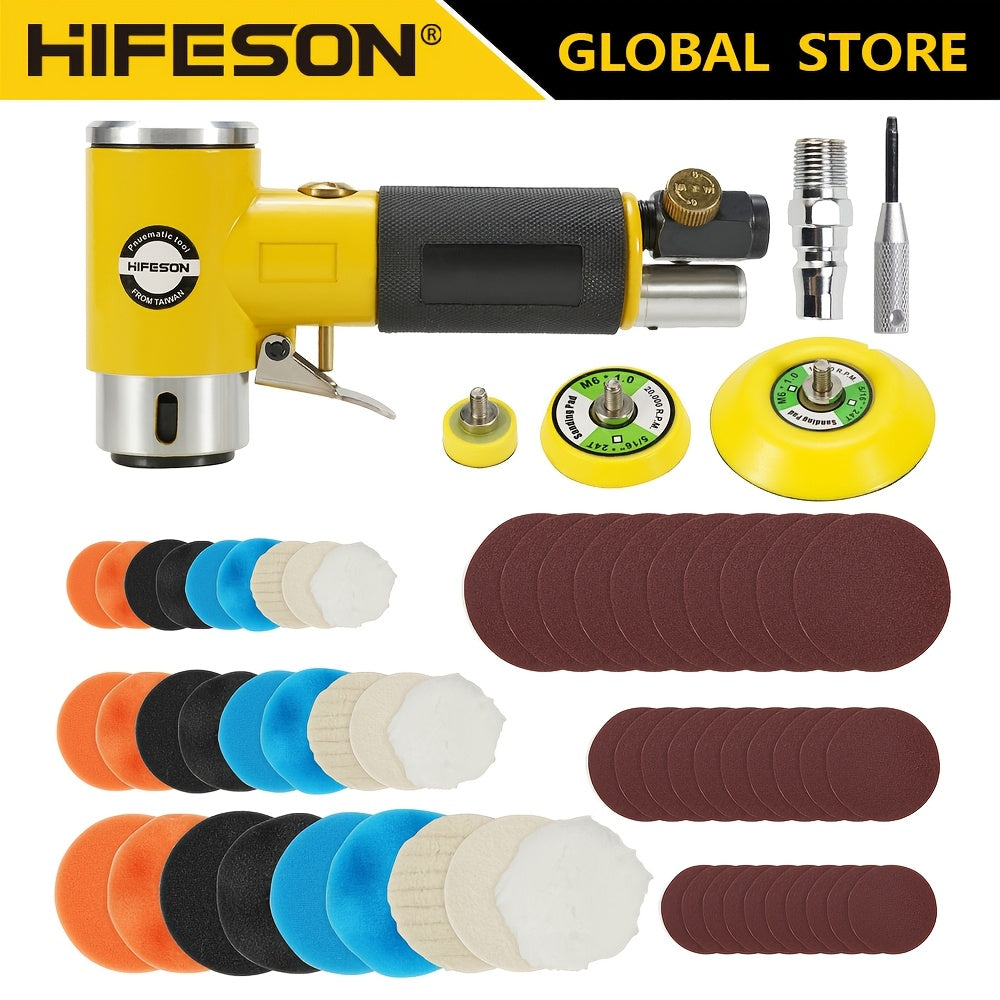 Mini Levigatrice Orbitale HIFESON 2/3" Levigatrice Pneumatica Lucidatrice Smerigliatrice Buffer a Doppia Azione 80pcs Set di Carta Abrasiva