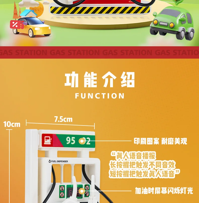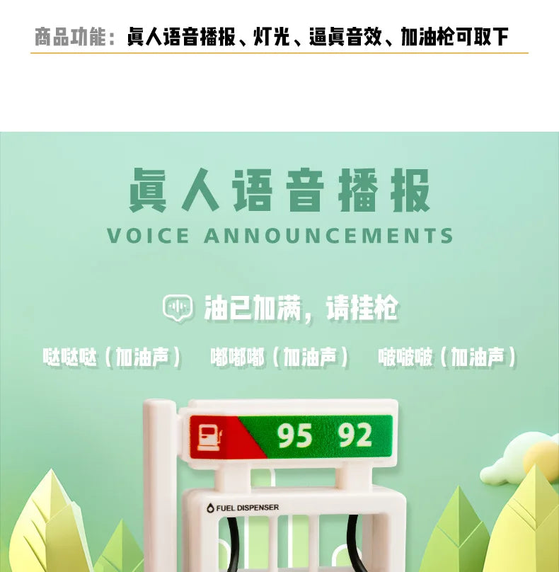 Modello di macchina per il rifornimento della luce e del suono simulato per bambini, giocattolo per l'educazione della prima infanzia, decorazione della scena dell'erogatore di carburante
