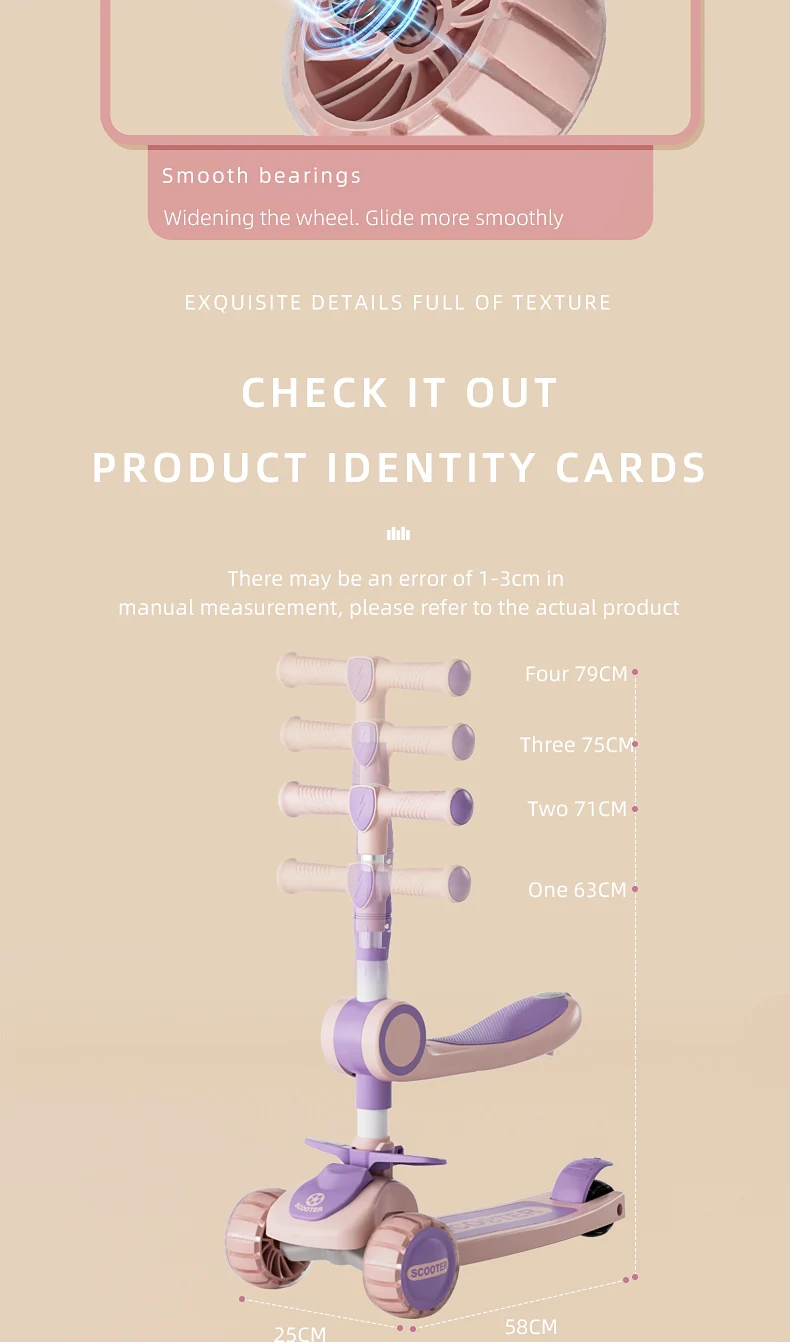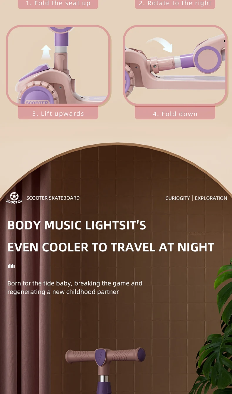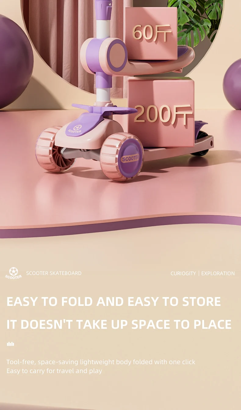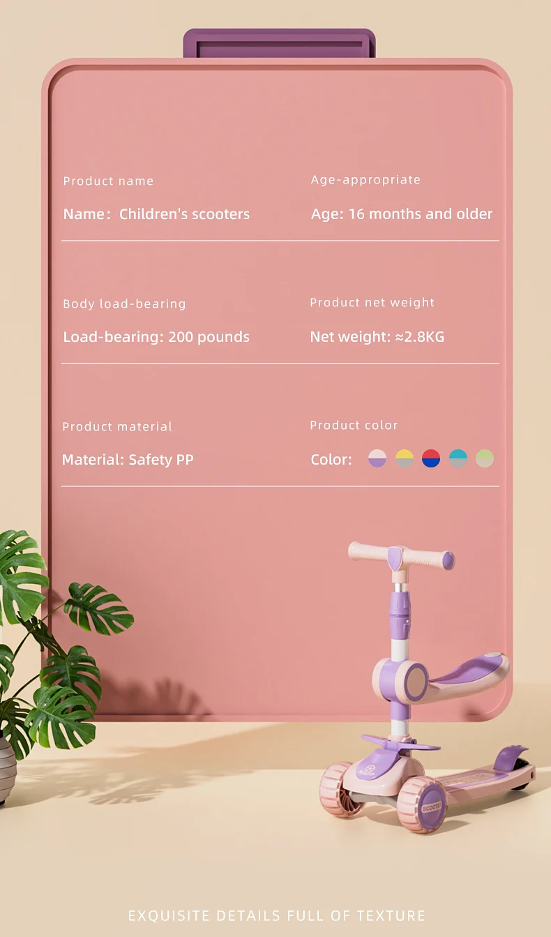 Children Kick Scooters & Foot Scooters Removable Seat Rear Brake Lightweight 3 PU Wheels Light Up Kids' Kick Scooter |