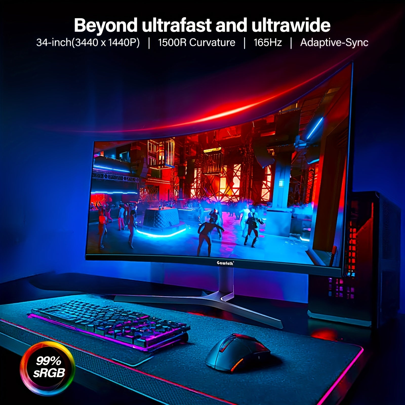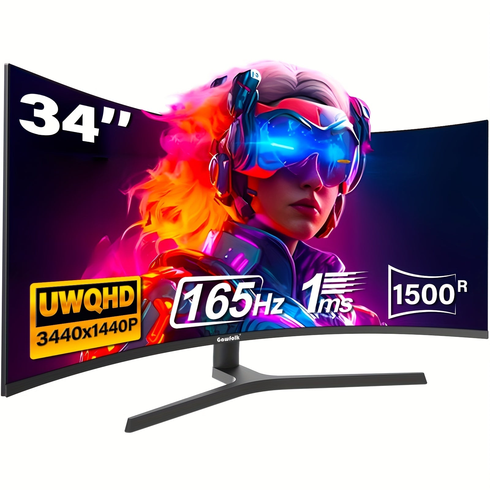 Monitor da Gioco Ultra-Wide Curve di 34 pollici Gawfolk 1500R - 165Hz, WQHD 3440x1440, FreeSync, Supporto Regolabile - Ideale per Giochi su PC