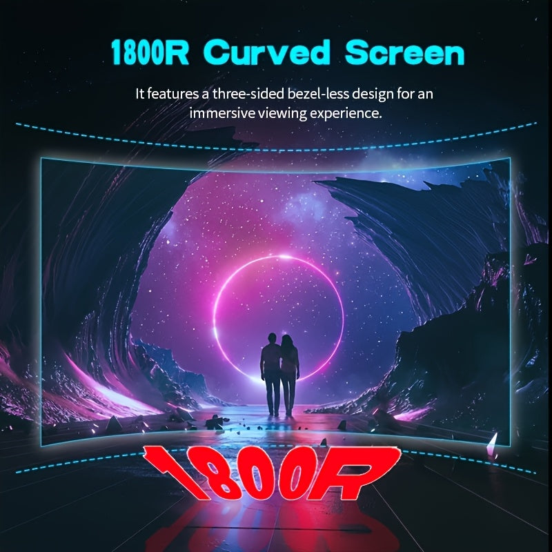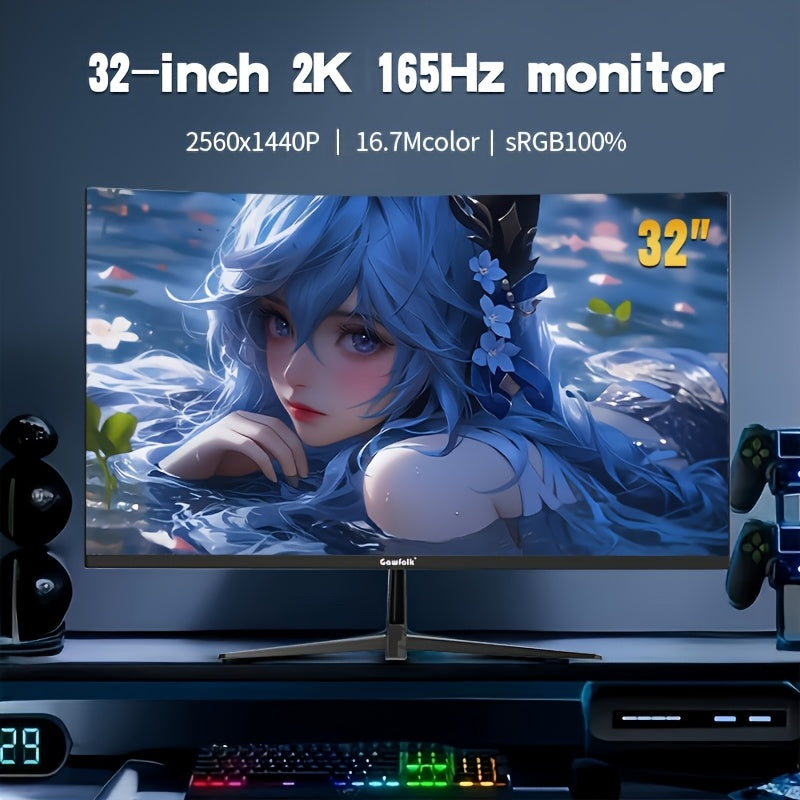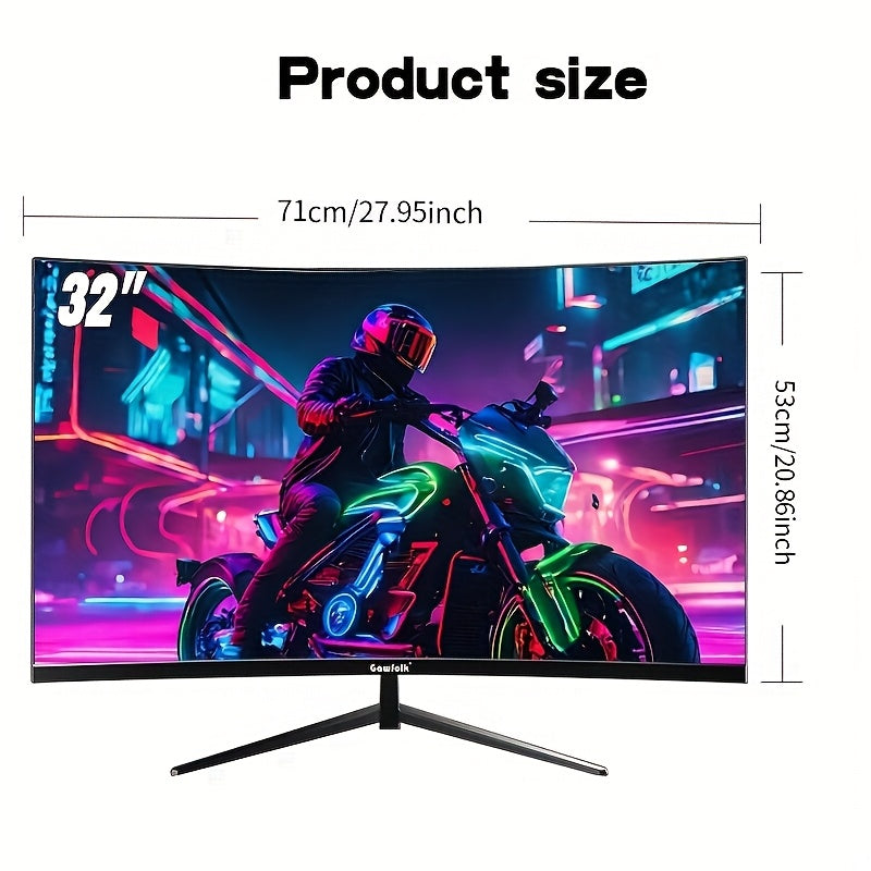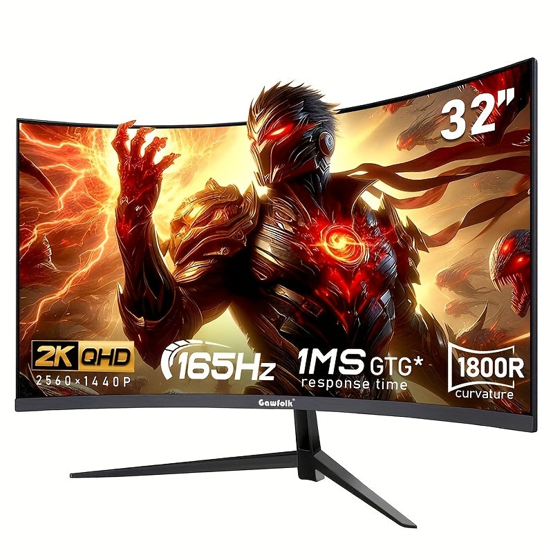 Monitor per PC Gawfolk da 32 pollici, 2K QHD (2560 × 1440P), monitor da gioco curvo a 165 Hz, 1 ms, FreeSync, 98% sRGB, angolo di visione ampio 178°, DisplayPort, HDTV, supporto da parete compatibile con parete 100 * 100 MM - Nero