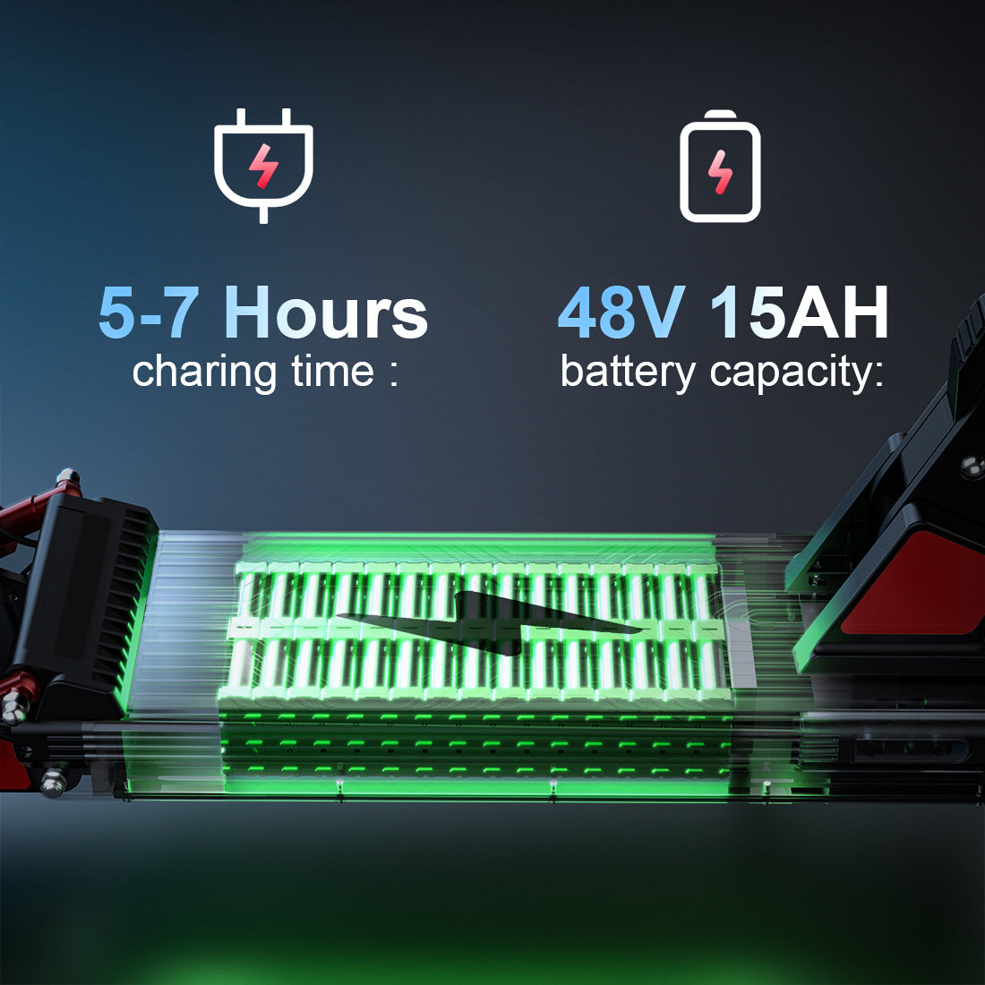 Monopattino elettrico per adulti, corrente di uscita 2A, tensione di uscita 54,6V, motore potente da 500W, portata di 34-43 km, carico massimo di 120 kg, regolabile, leggero, monopattino da lavoro a 2 ruote con ruote grandi e lisce - Monopattino elettrico
