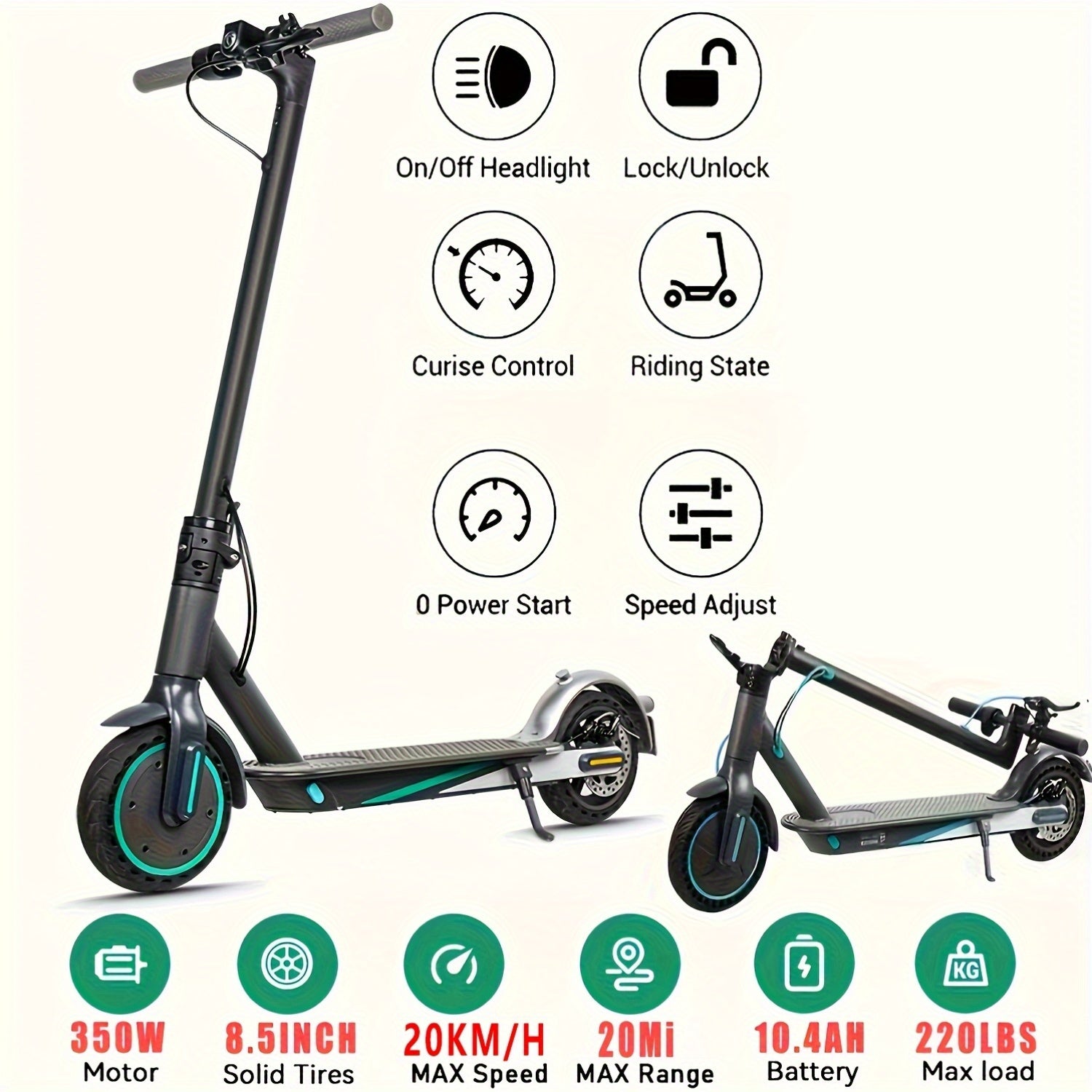 Monopattino elettrico per adulti, fino a 20 km/h, portata di 25-30 km e carico di 119,75 kg, monopattino elettrico in lega di alluminio con motore da 350 W, monopattino pieghevole con sistema di frenatura doppio per regali di compleanno e Natale.