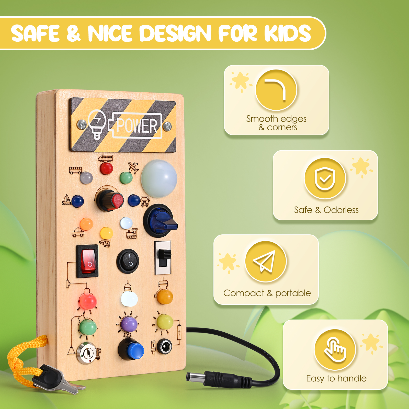 La nostra lavagna a LED è un giocattolo versatile e coinvolgente progettato per affascinare le giovani menti attraverso il gioco interattivo.Questo compagno di viaggio compatto e portatile offre una vasta gamma di attività, consentendo ai bambini di imparare ed esplorare divertendosi.Con i suoi 8 stili di interruttore, luci a LED e l'enfasi sulla sicurezza, questa lavagna occupata è il regalo ideale per i bambini dai 3 anni in su.
