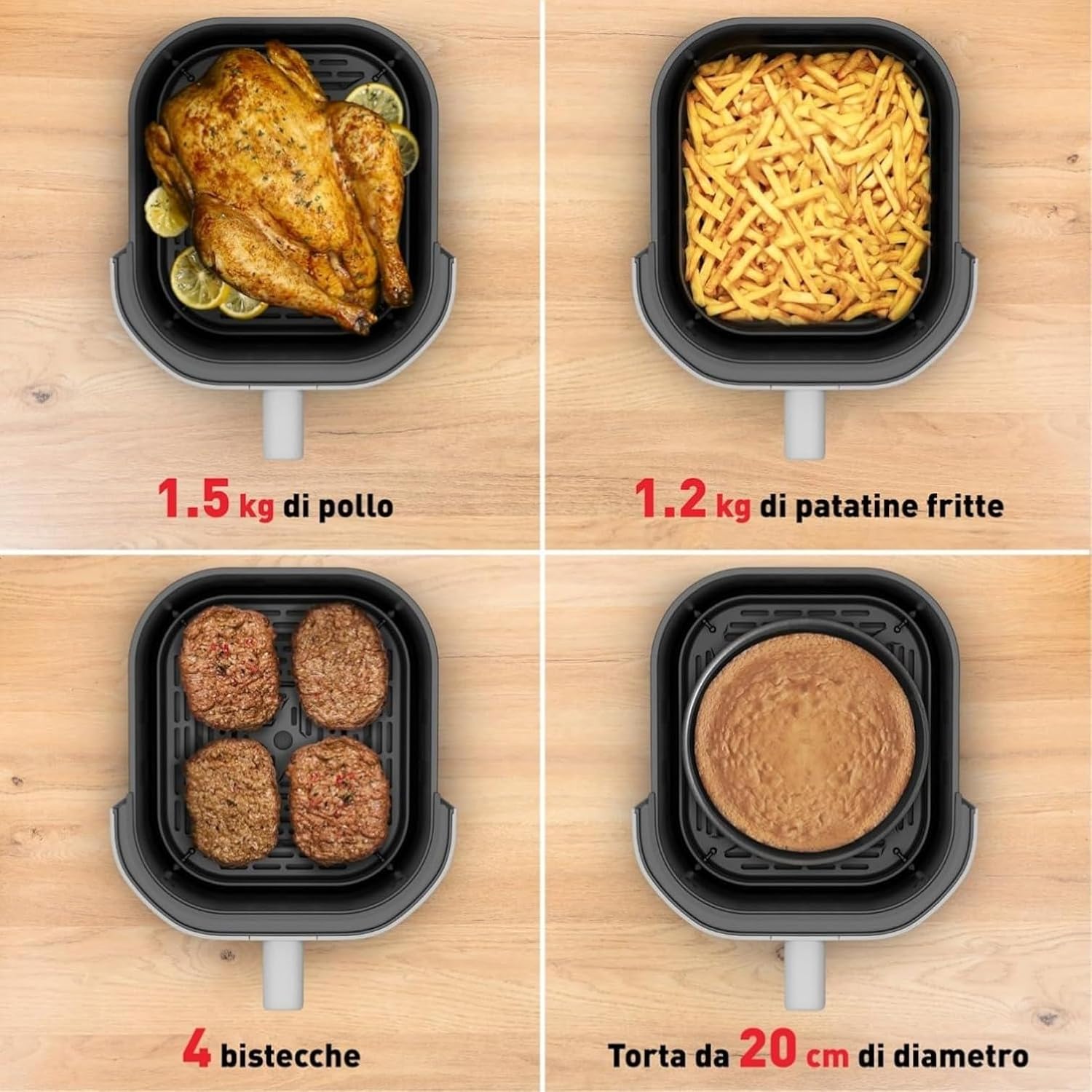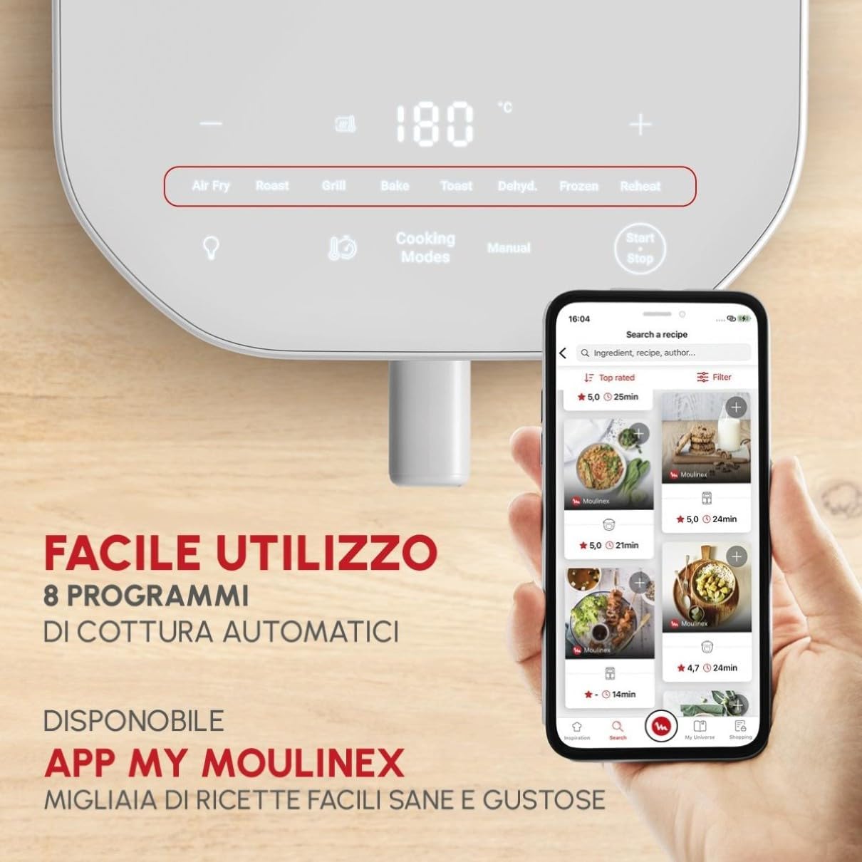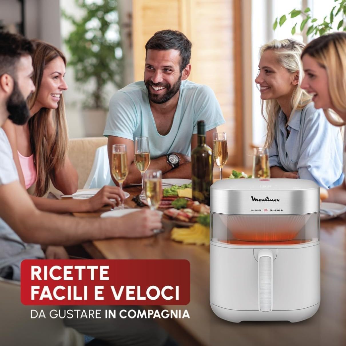 Moulinex Easy Fry Infrared, Friggitrice ad Aria 7L, Tecnologia Infrarossi, Doppia resistenza, Pannello Digitale, Lavabile in Lavastoviglie, Finestra di Osservazione, 8 Modalità, App Ricette,EZ831G
