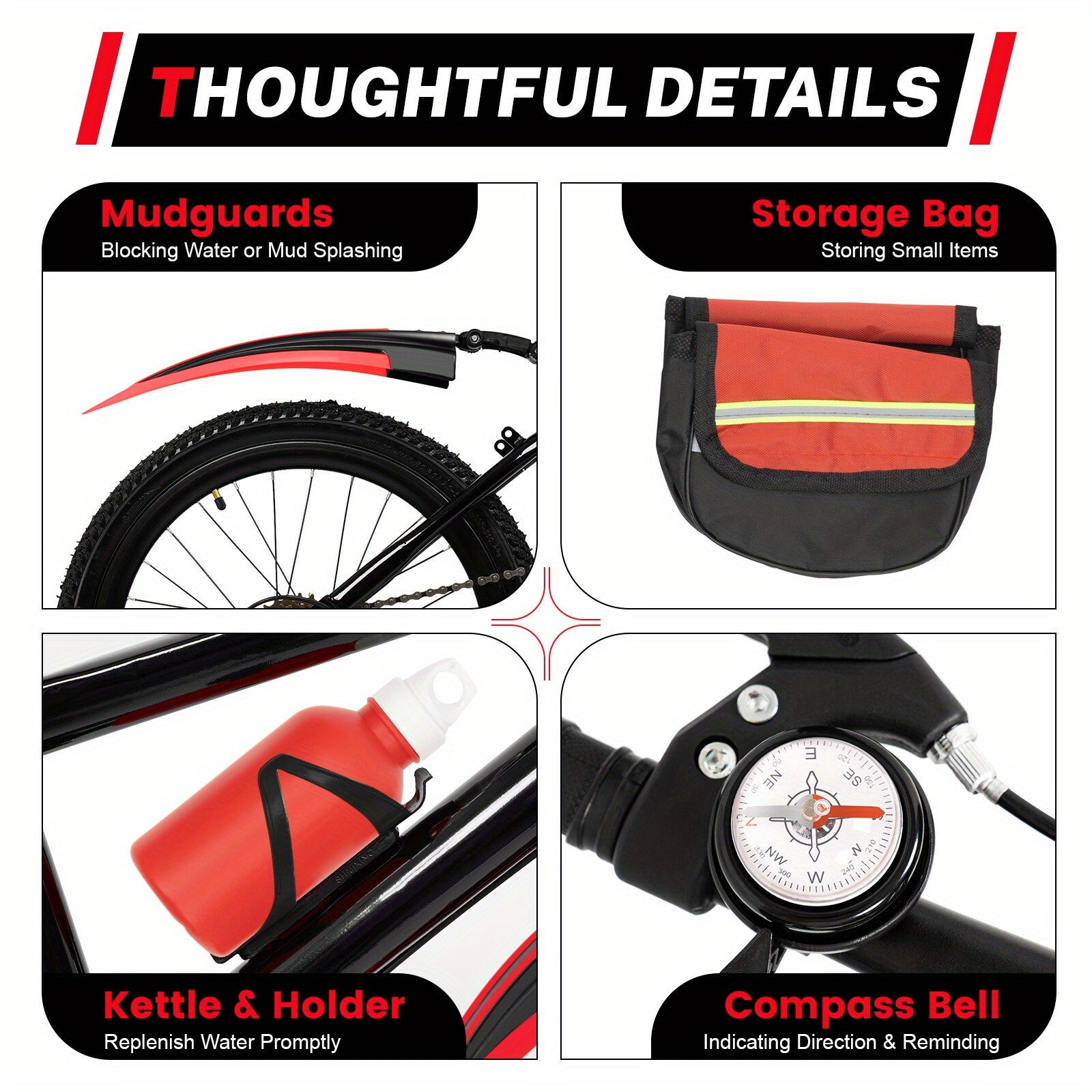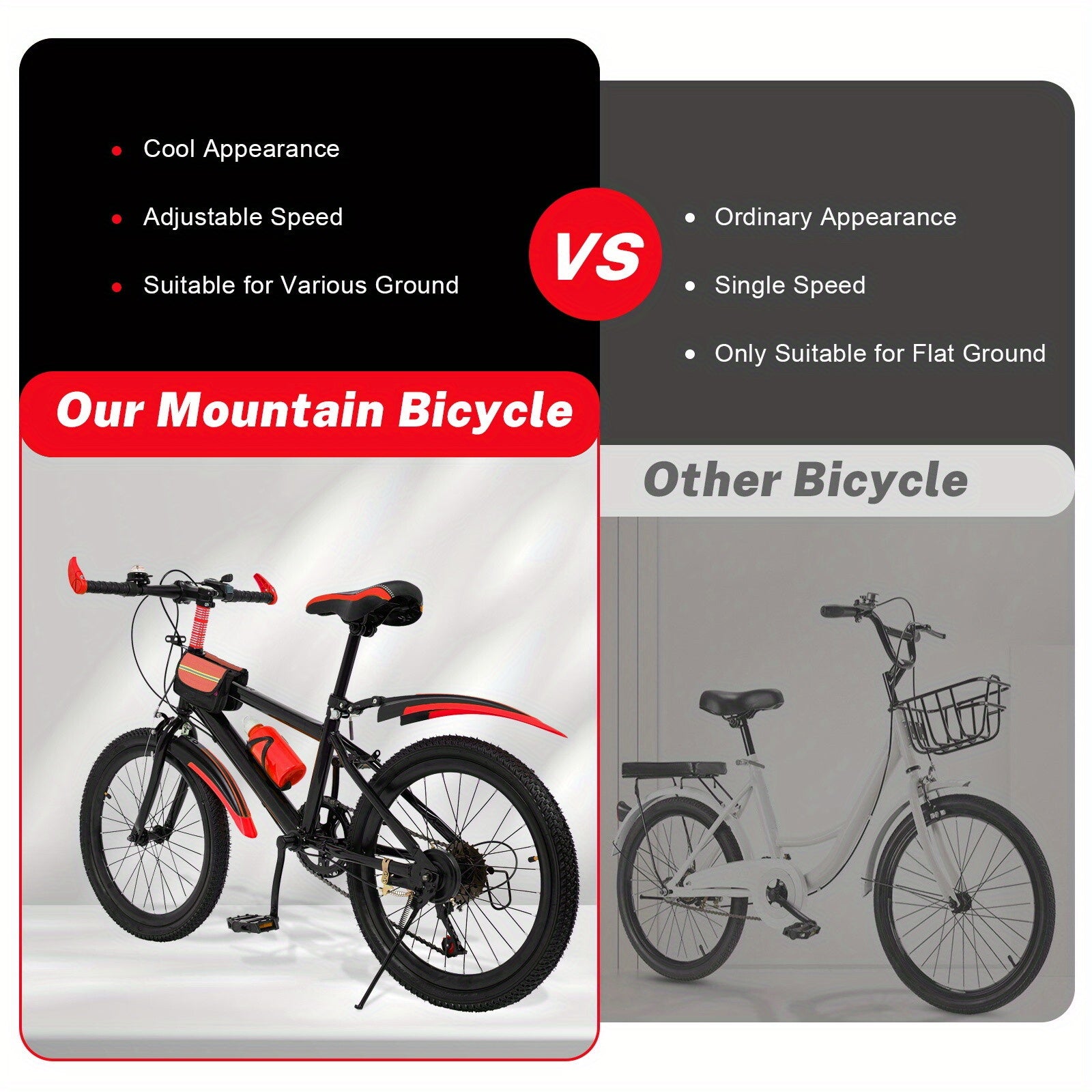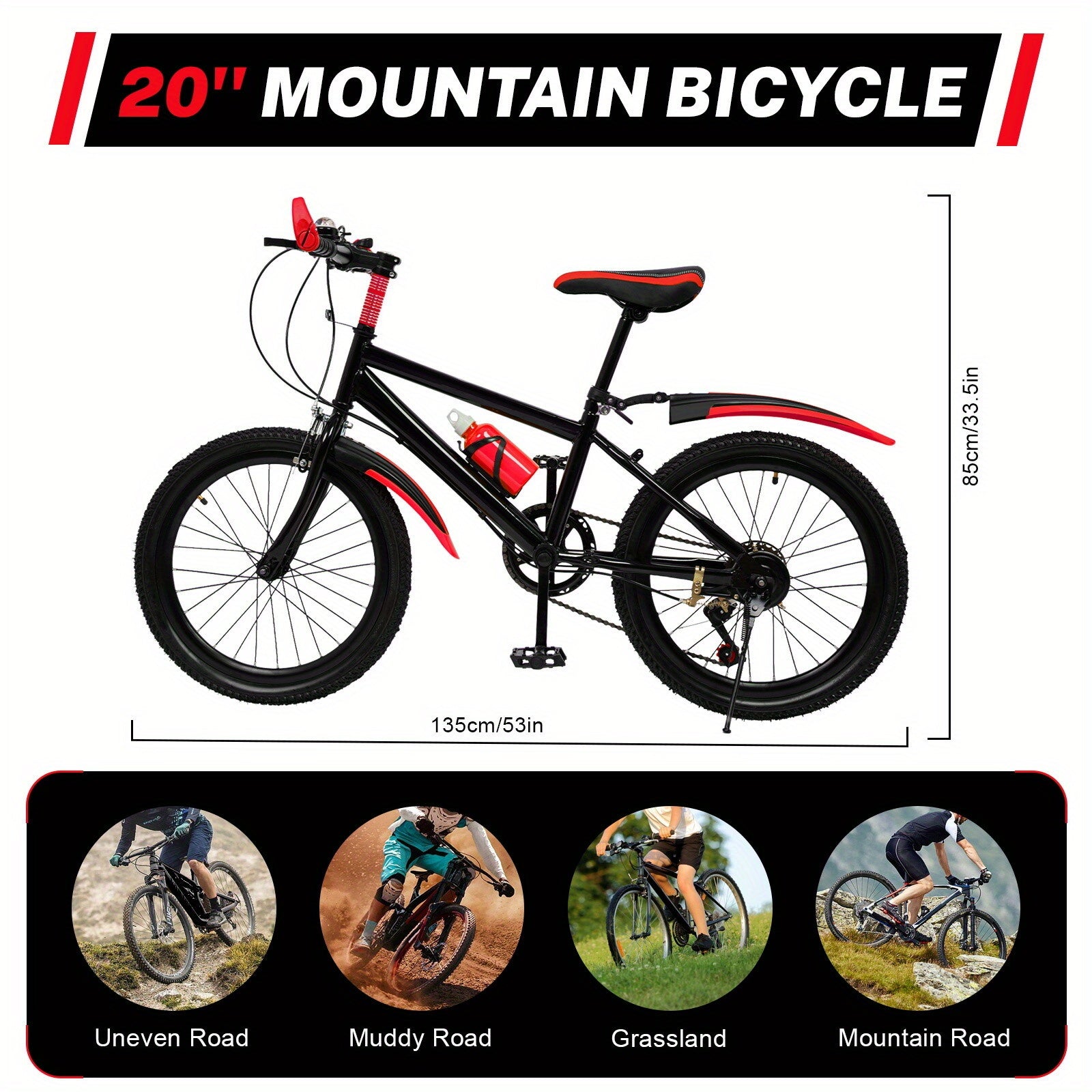 Mountain Bike da 50.8cm per Adulti con Telaio in Acciaio Lega & Dettagli Rossi - Sedile Antiscivolo Regolabile, Sospensione Anteriore, 7 Velocità, Pneumatici Neri Totalmente in Gomma - Bicicletta Unisex per Pendolarismo Urbano e Fuoristrada, Design Modern