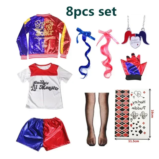 Natale Capodanno Carnevale Bambini Ragazze Suicide Harley Costumi Cosplay Squad Quinn Monster Joker Giacca Vestito adesivi per tatuaggi