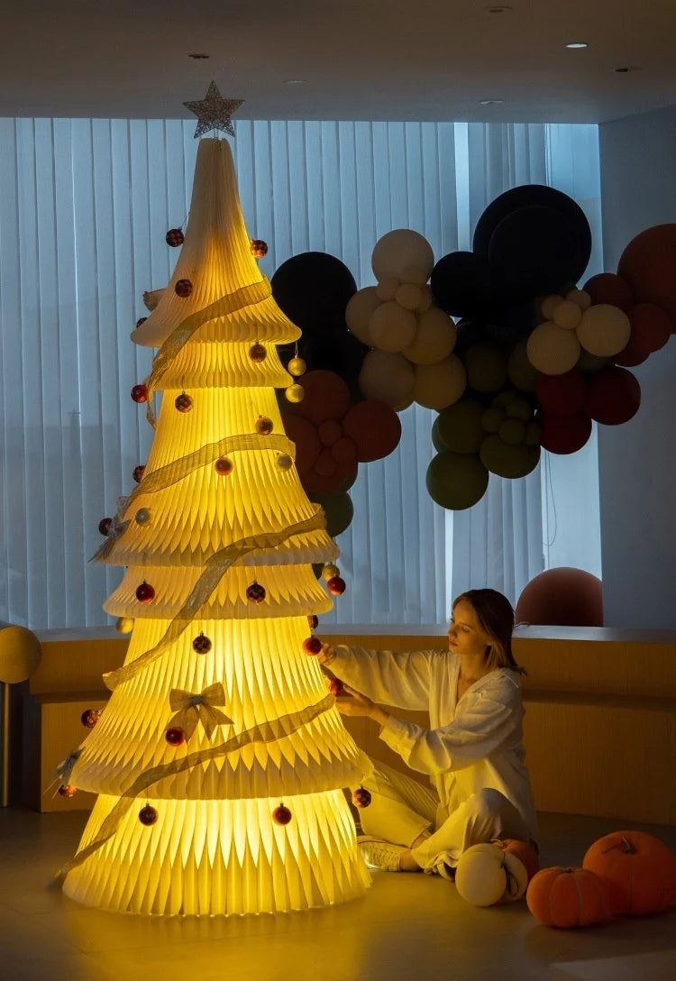 Natale grande ornamento per albero di Natale 2 m di altezza pieghevole in carta bianca decorazione per albero di Natale finestra ornamento luminoso