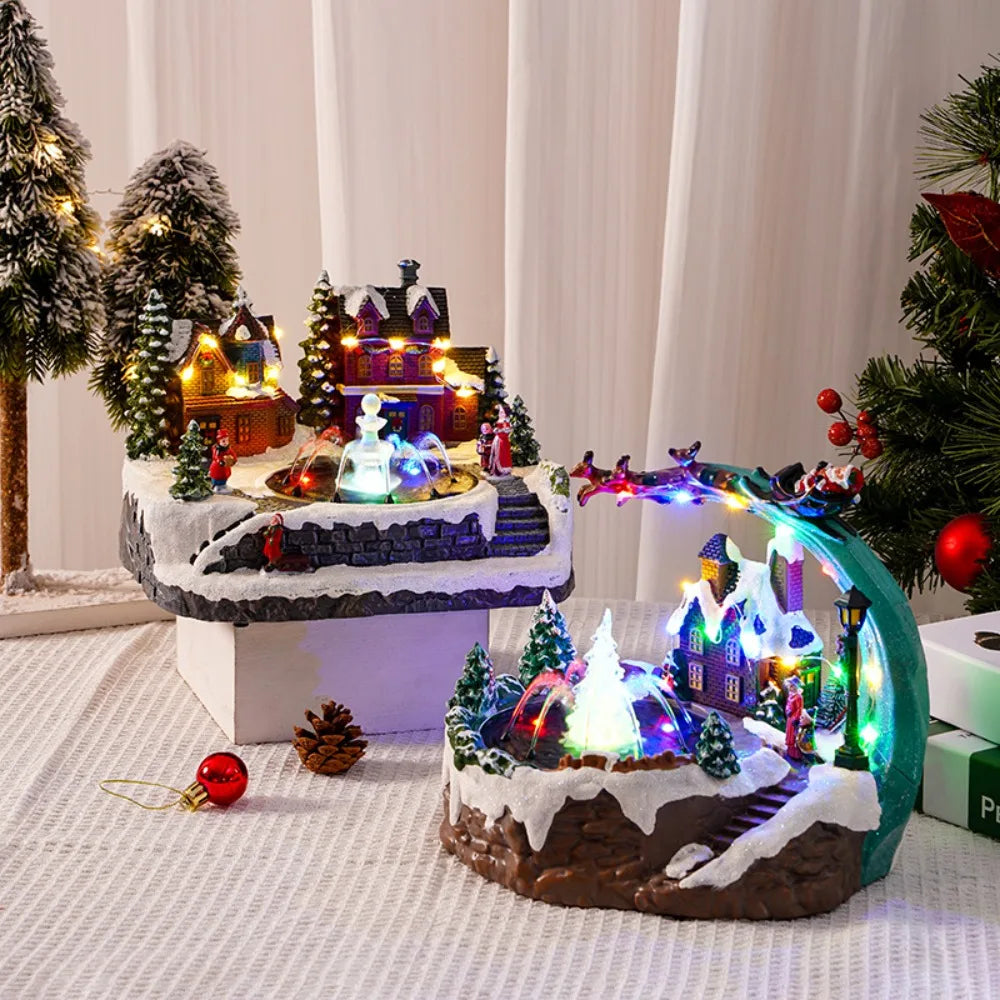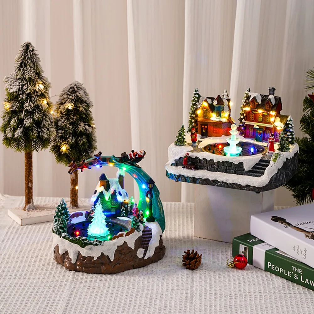 Natale nuova fontana casa luminosa casa di neve regalo di Natale rotante casa ornamenti da tavolo in resina artigianato decorativo