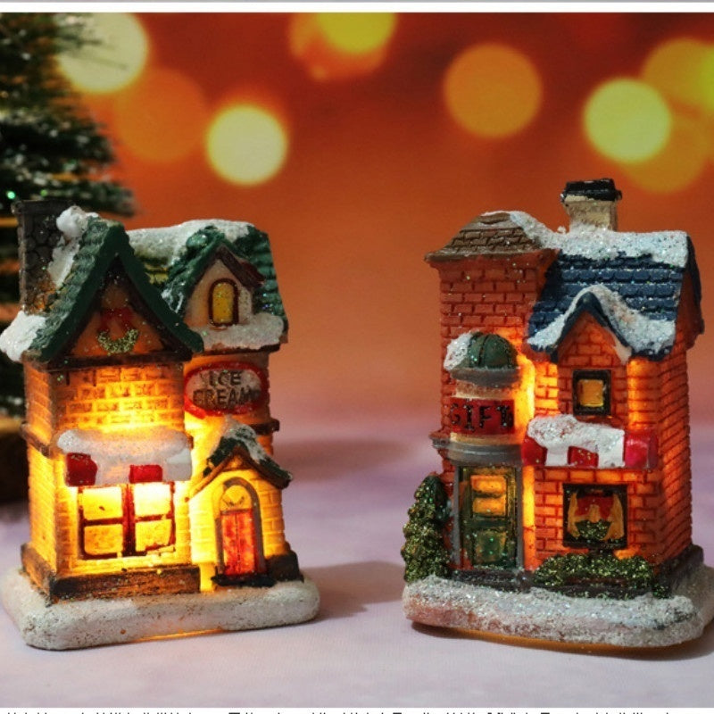 Natale Nuove decorazioni natalizie Piccola casa in resina Micro paesaggio Casa in resina Piccoli ornamenti Regali di Natale