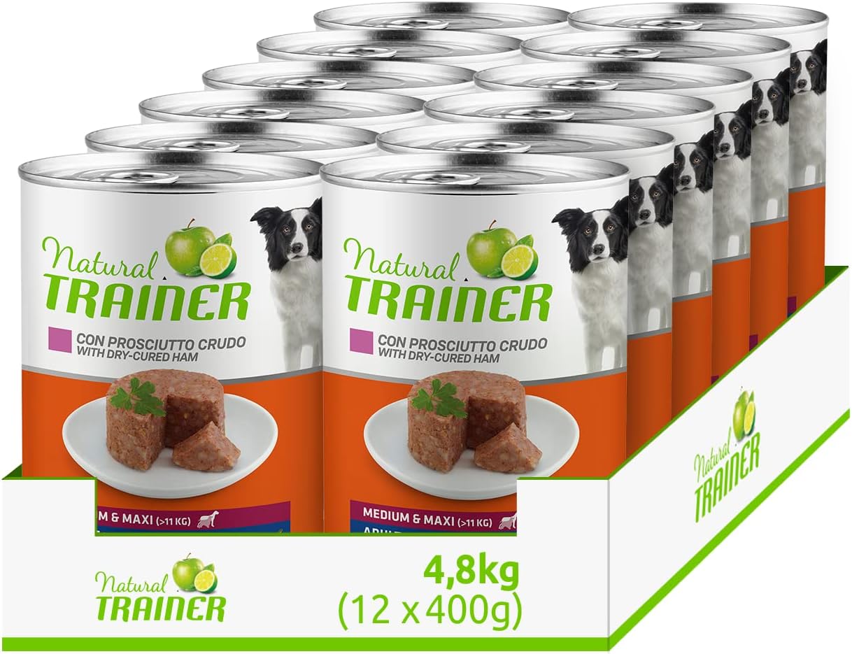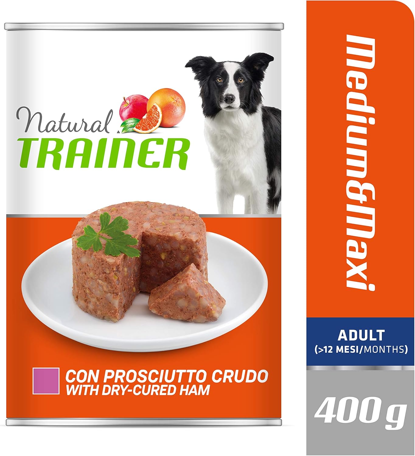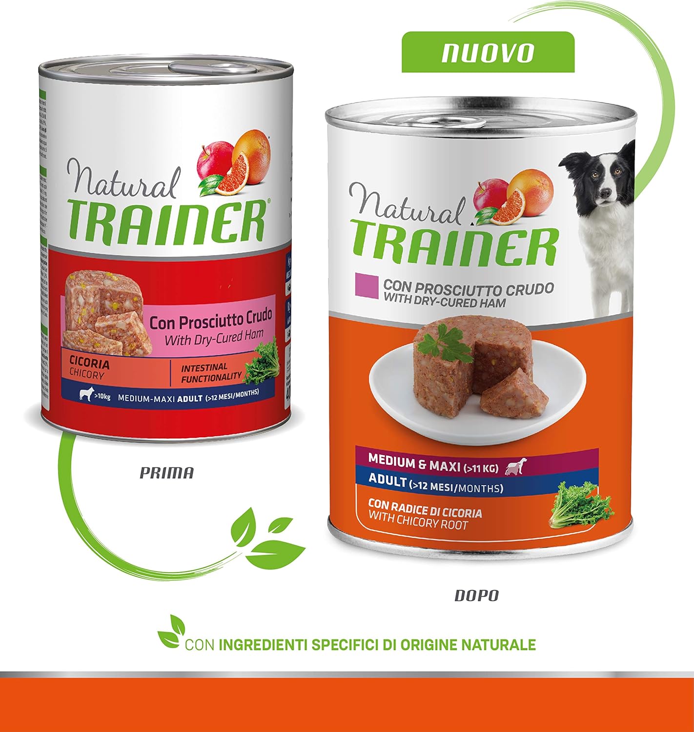 Natural Trainer Medium-Maxi - Cibo Umido per Cani con Prosciutto Crudo 12 x 400 g