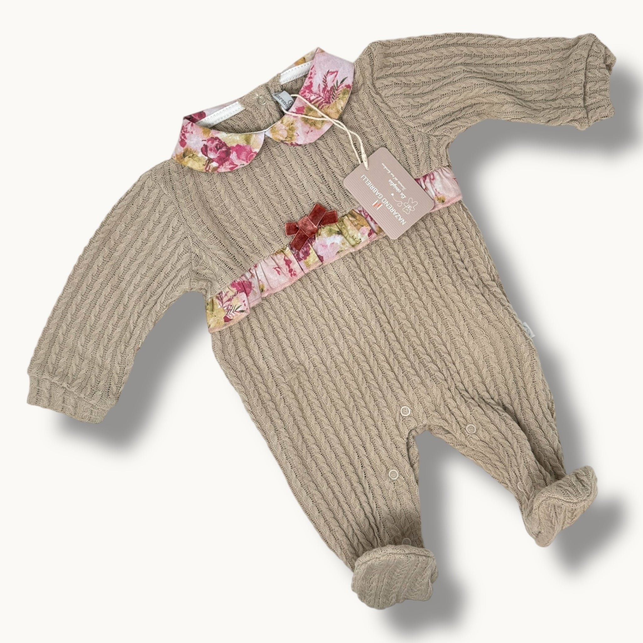 Nazareno Gabrielli Baby Tutina Neonata In Tessuto Mano Lana Con Applicazioni Art. Ng2215-31