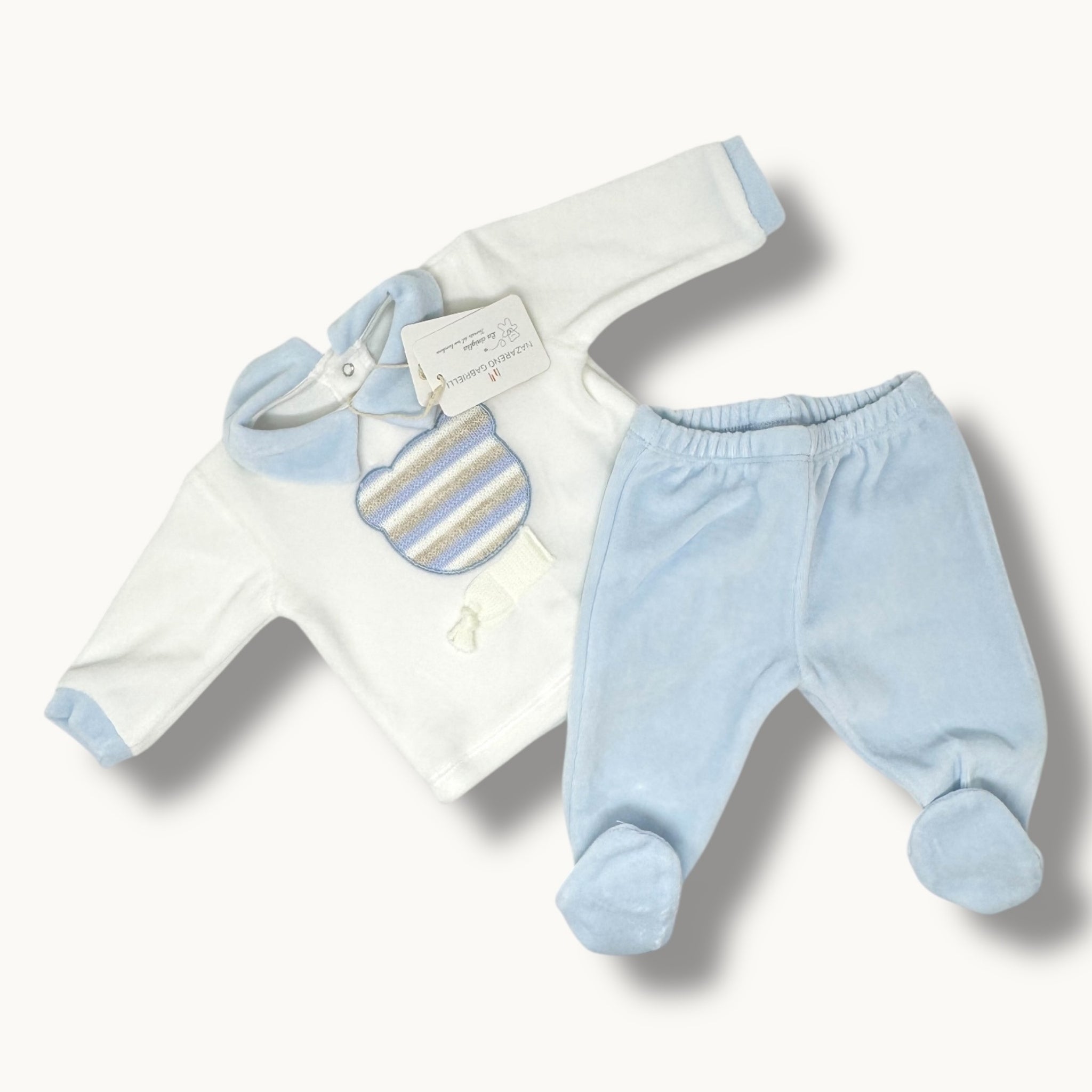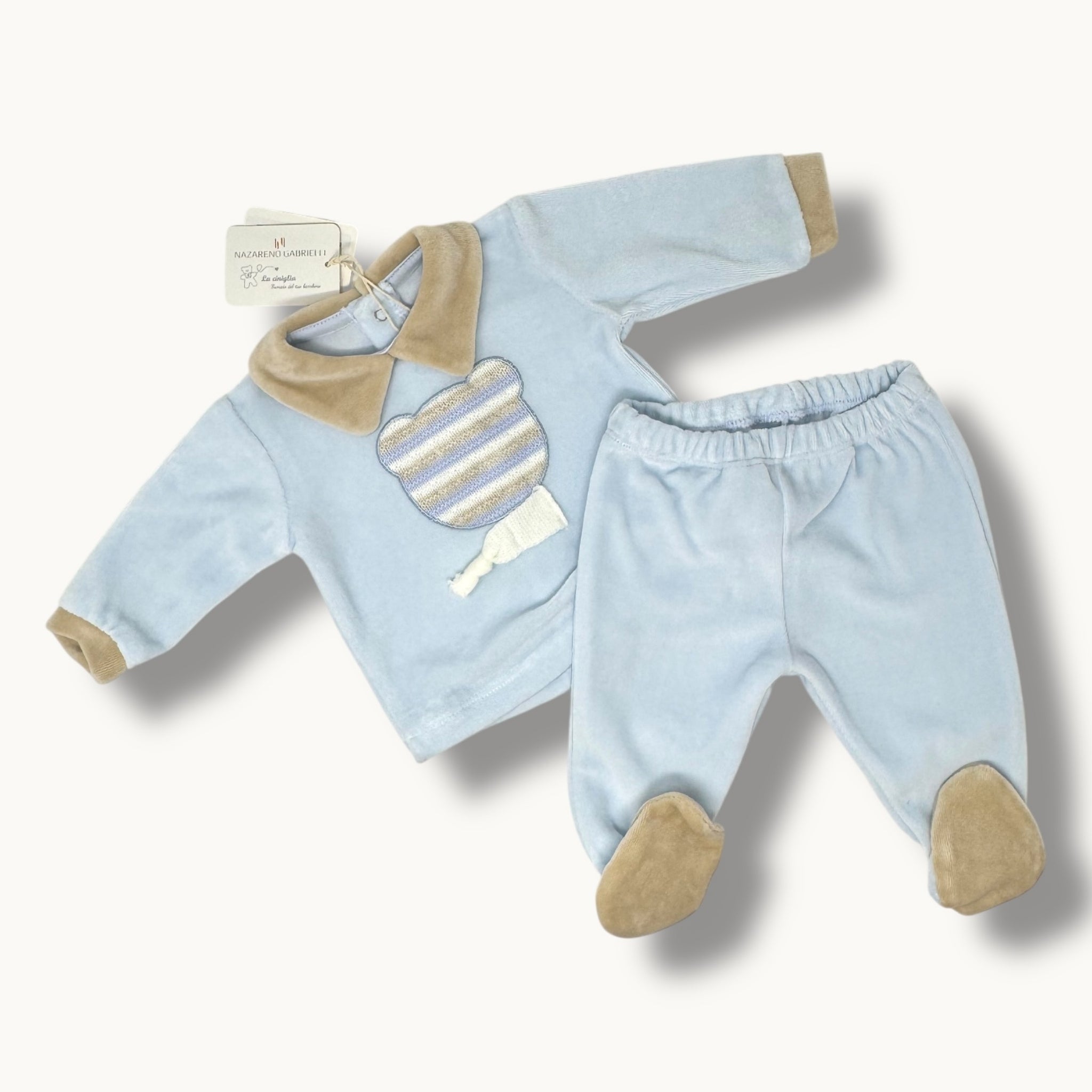 Nazareno Gabrielli Completo 2 Pezzi Clinico Neonato In Ciniglia Di Cotone Con Applicazione Art. Ng2120-51