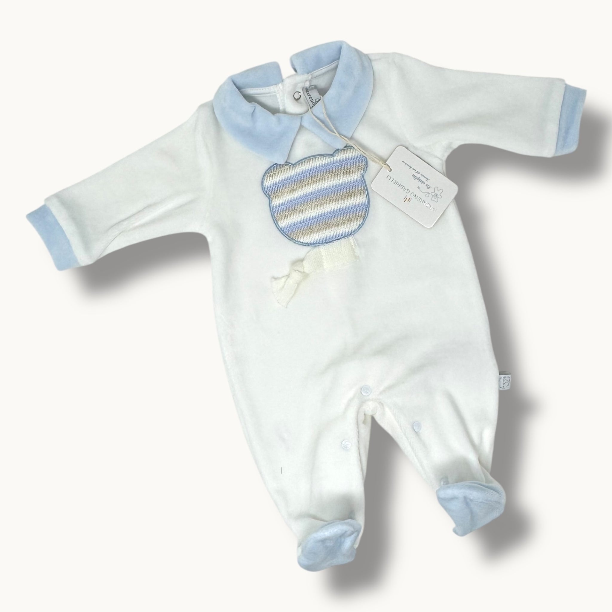 Nazareno Gabrielli Tutina Neonato Di Ciniglia In Cotone Con Applicazioni Art. Ng2110-51